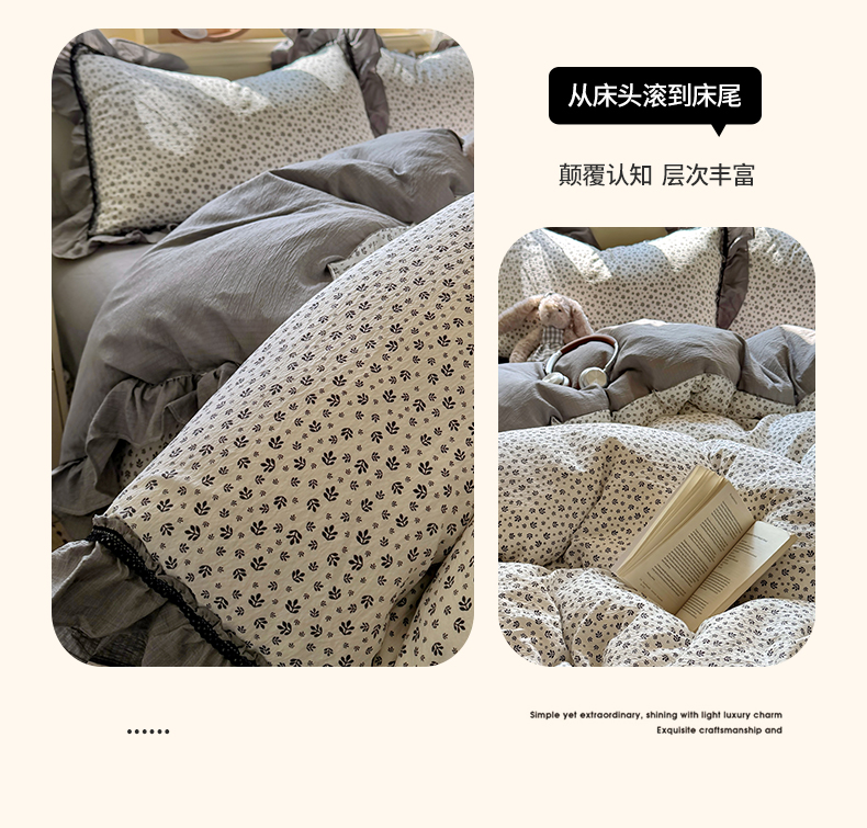 商品名称:(总)芭比蔓家纺 2026春夏新款皱皱纱印花四件套