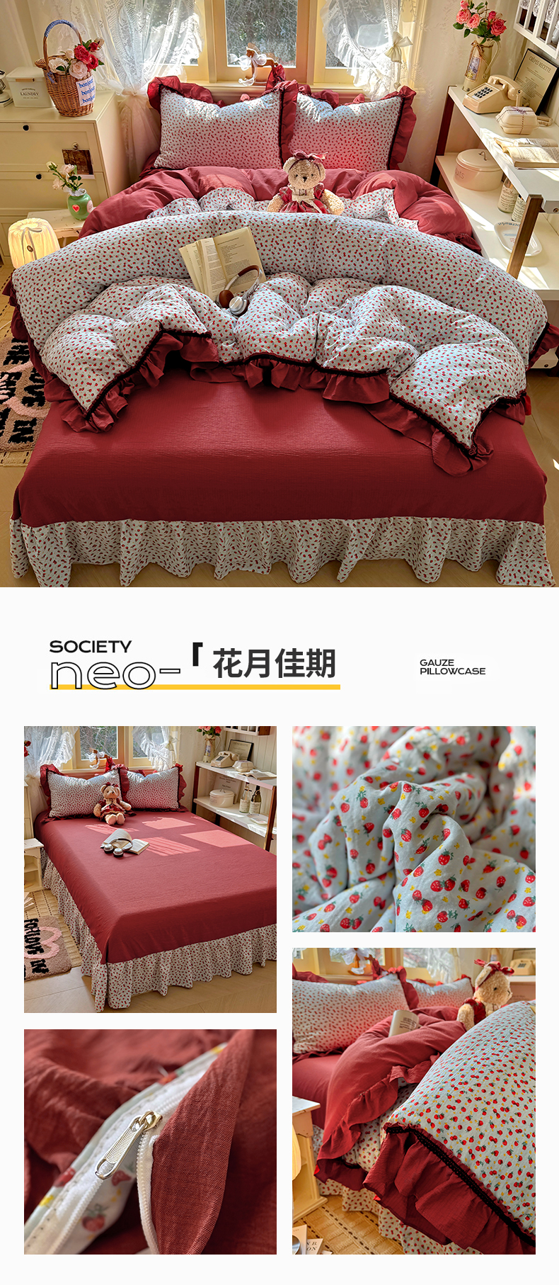 (总)芭比蔓家纺 2026春夏新款皱皱纱印花四件套