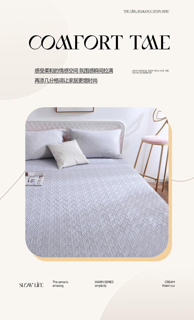 (总)沁童儿童用品店 2026新款全棉纯棉绗绣夹棉花床笠单件单床笠,宝蓝,豆沙,粉色,灰色,绿灰,米黄,深绿,驼色