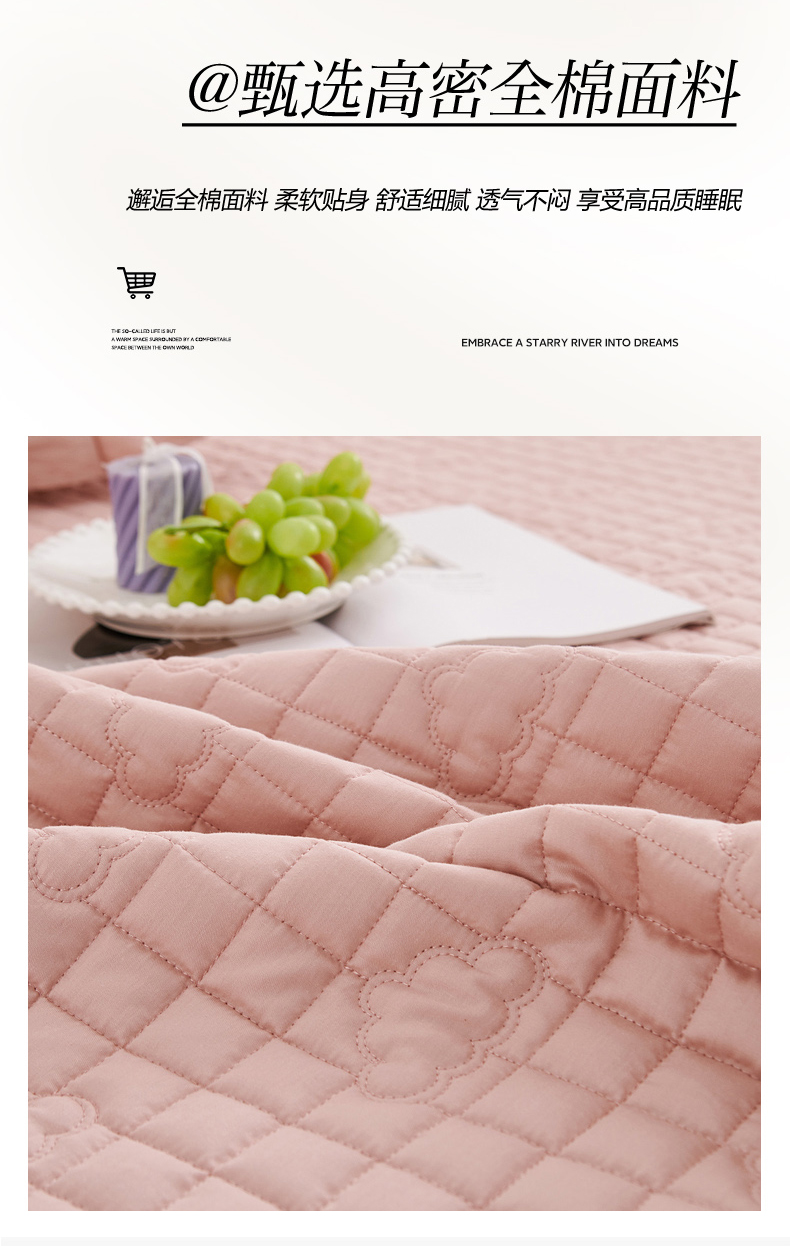 (总)沁童儿童用品店 2026新款全棉纯棉绗绣夹棉花床笠单件单床笠,宝蓝,豆沙,粉色,灰色,绿灰,米黄,深绿,驼色