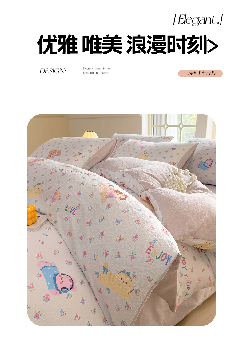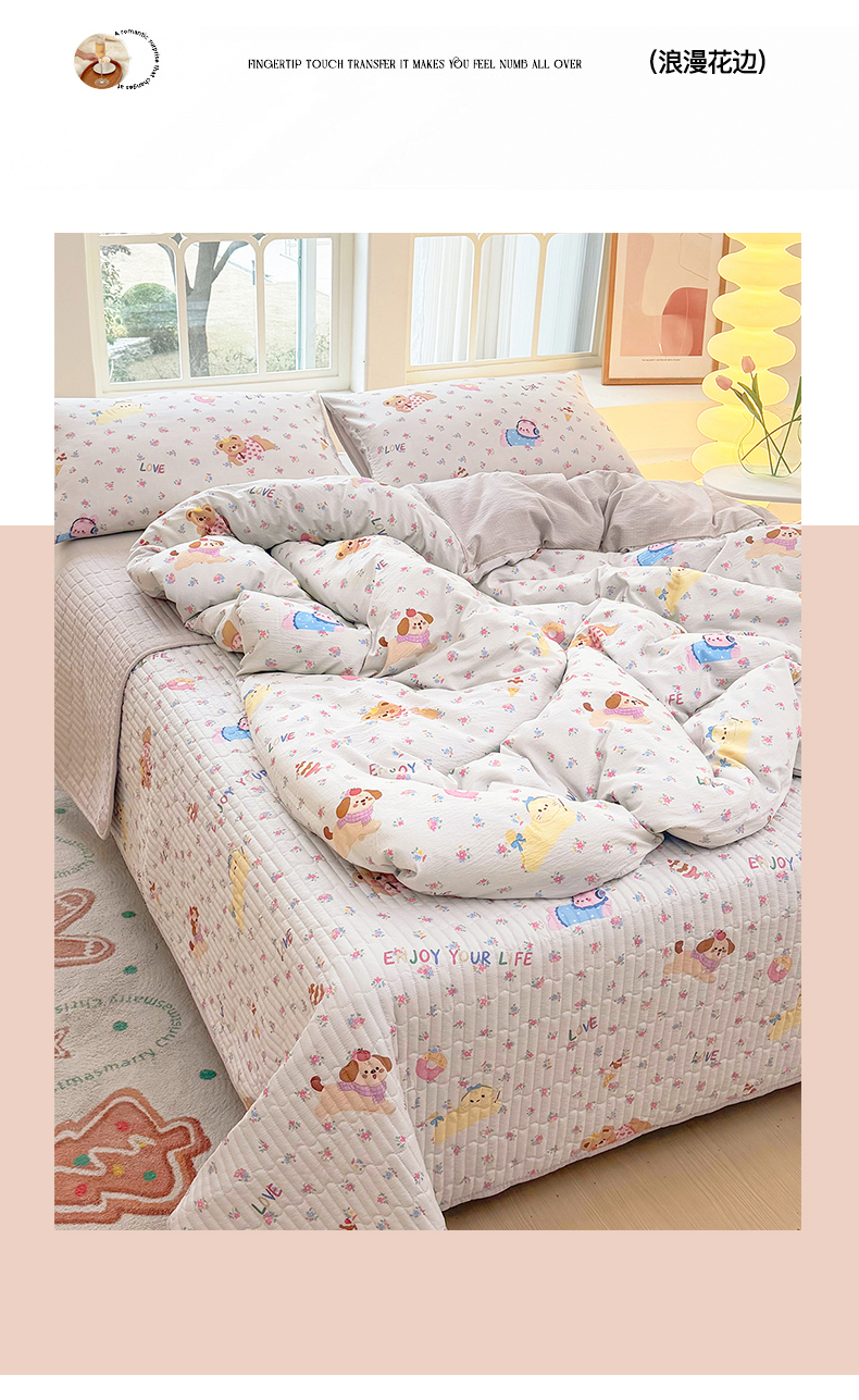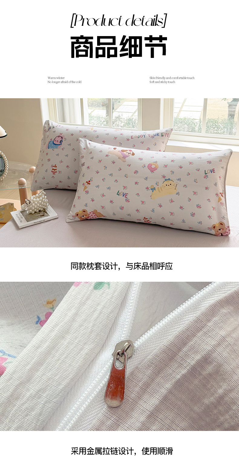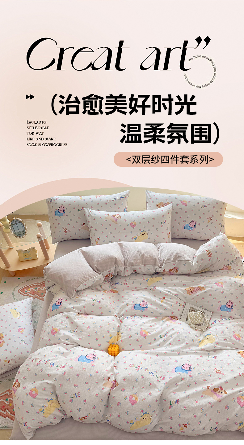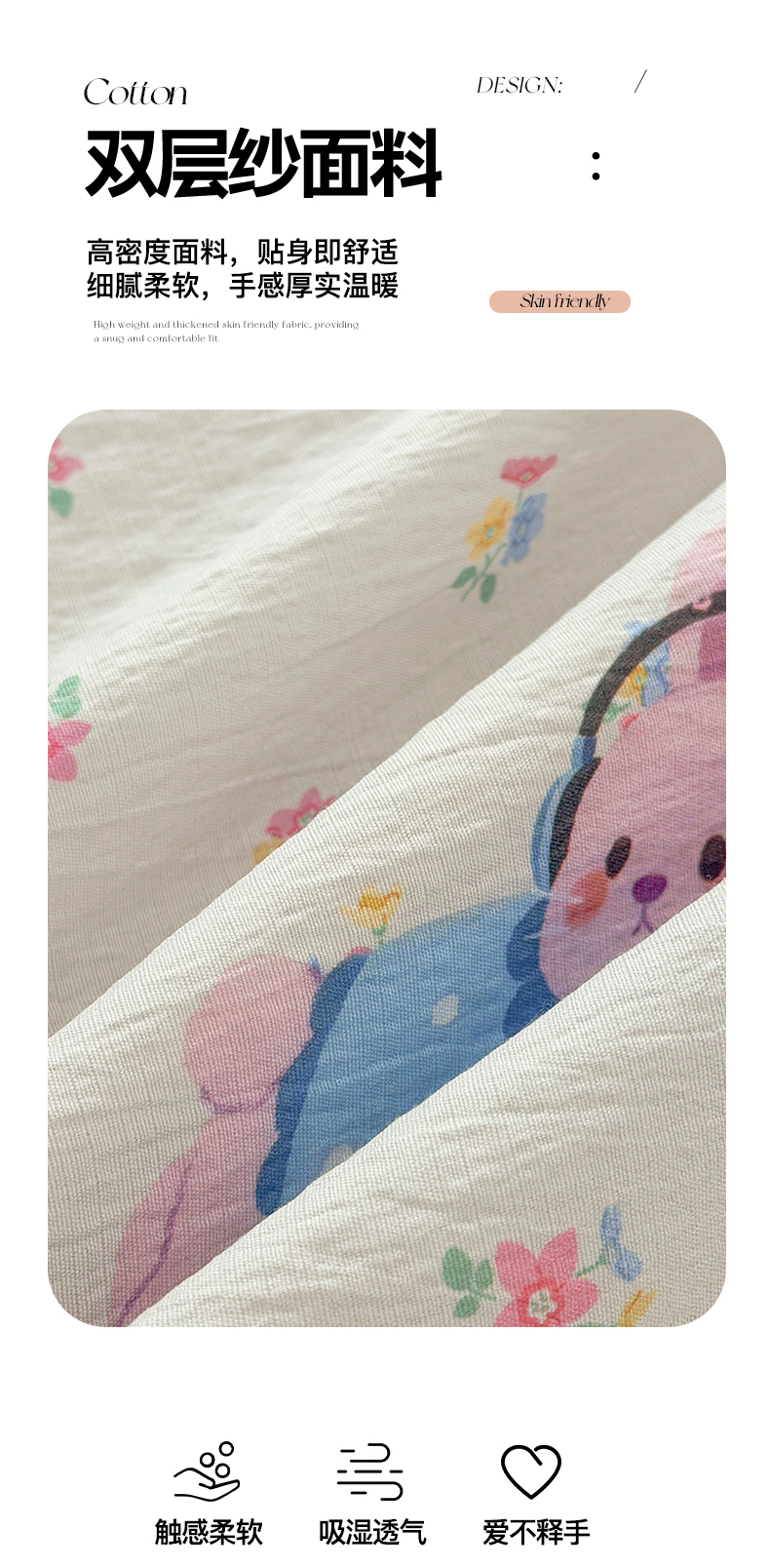 当前位置: 91家纺网 > 商品网购 > 床品套件 > 四件套 > 化纤普通四件套 > 悠米悠家 2026新款亲肤舒适木棉双层纱印花四件套 花漾萌宠