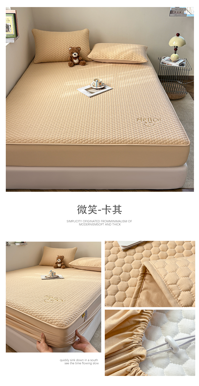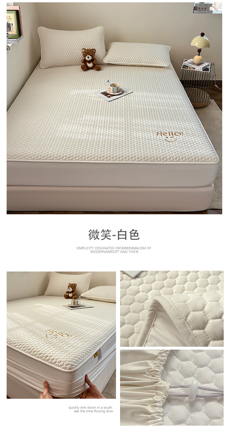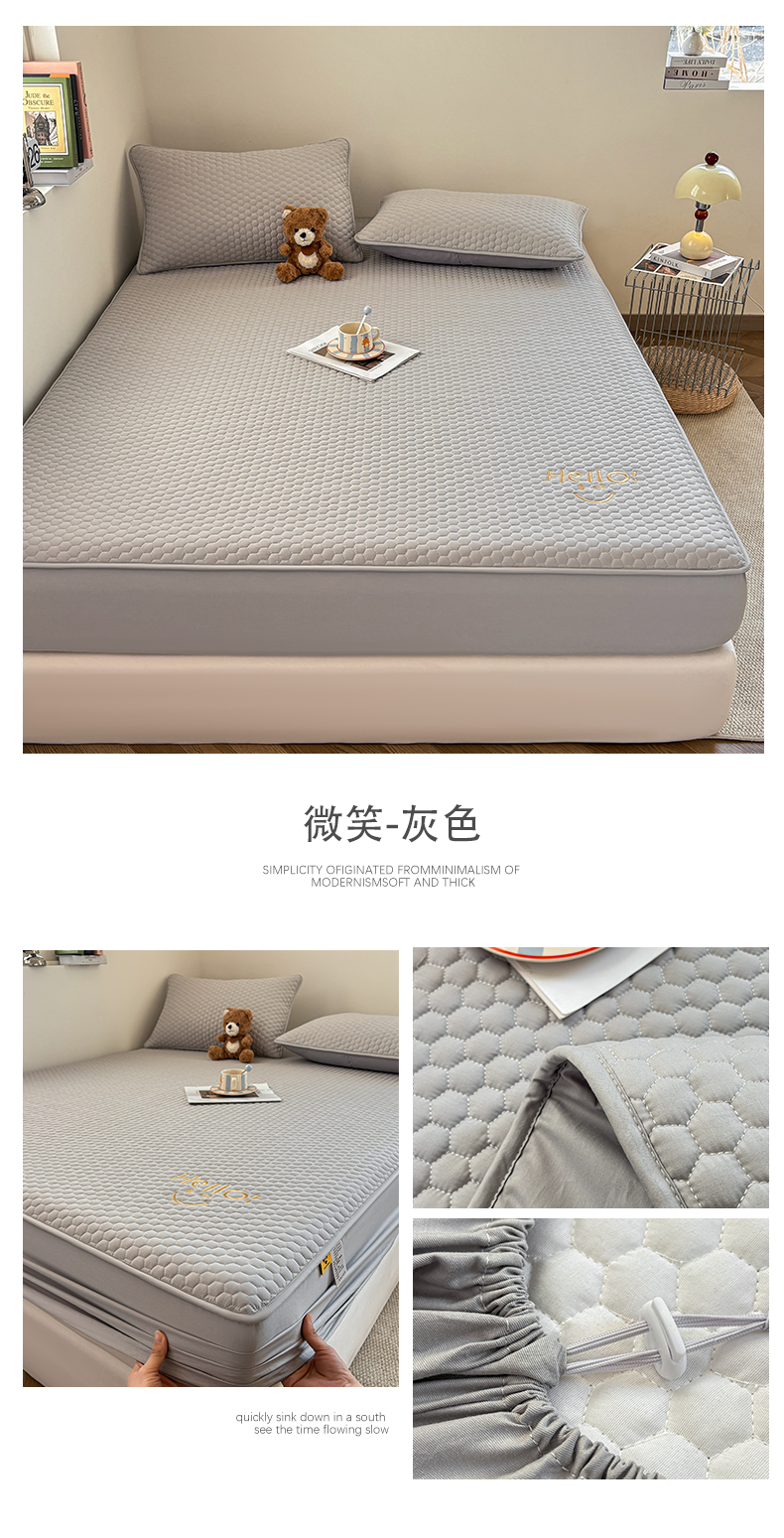 (总)居眠 2026新款微笑全棉夹棉单床笠床笠单件,微笑-白色,微笑-粉色,微笑-灰色,微笑-卡其,微笑-蓝色,组合图仅供展示-不可下单