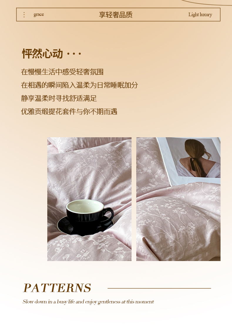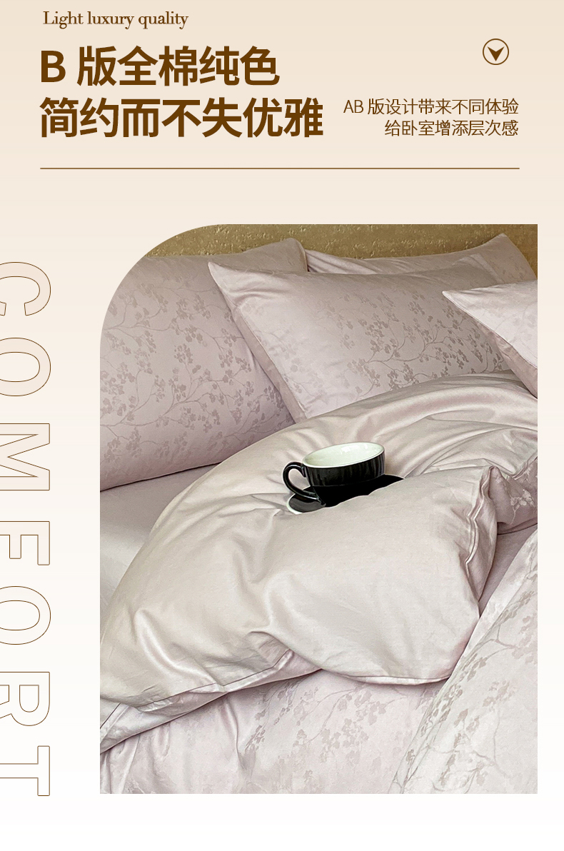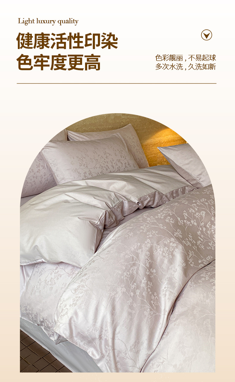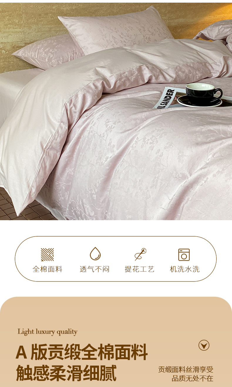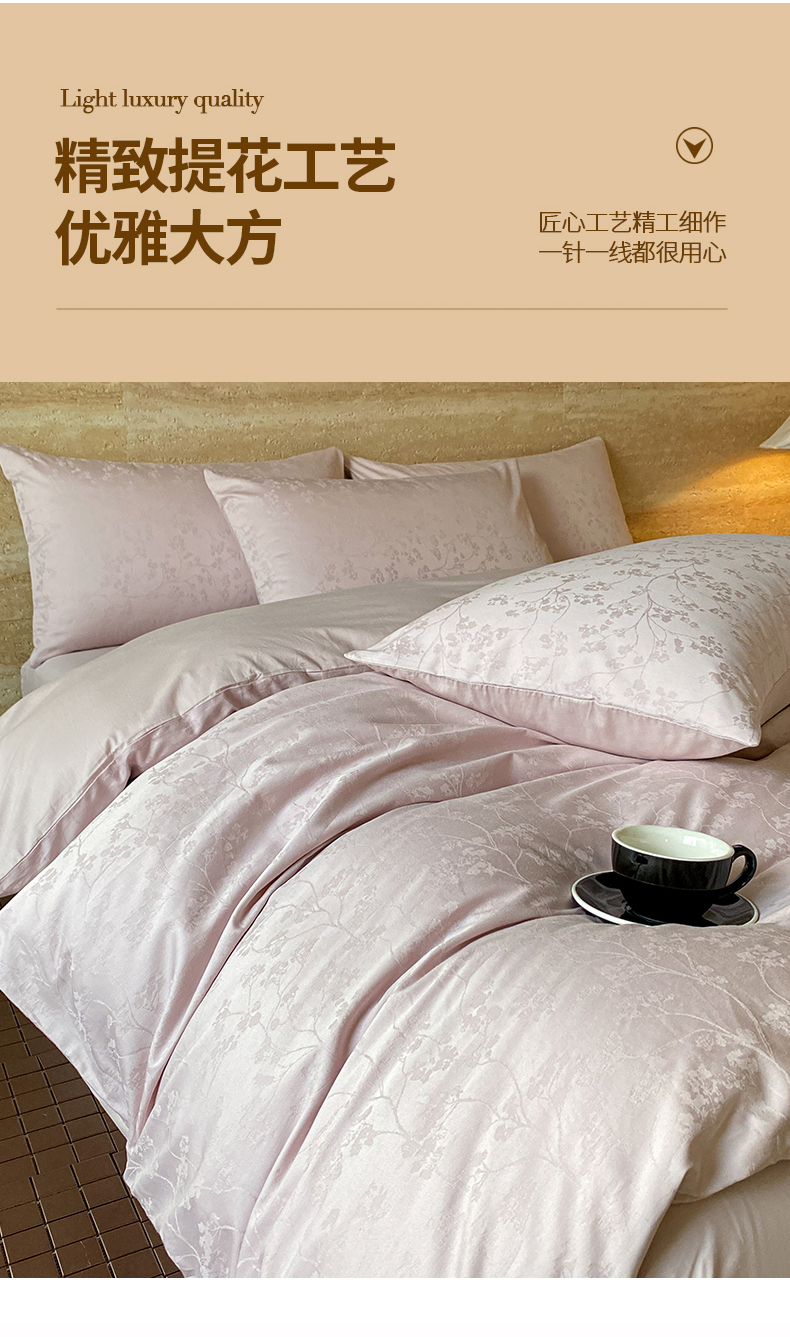 当前位置: 91家纺网 > 商品网购 > 床品套件 > 四件套 > 全棉普通四件套 > 琪格格纺织 2026新款纯棉全棉60s贡缎轻奢大提花四件套 纯棉贡缎 清影粉紫