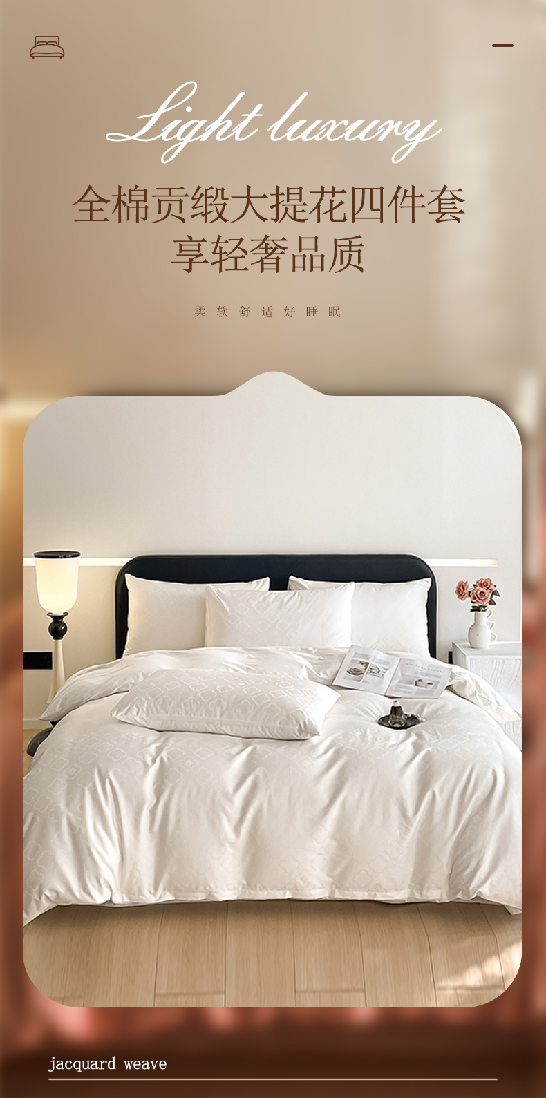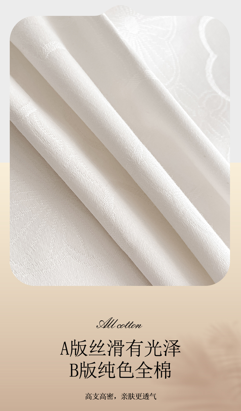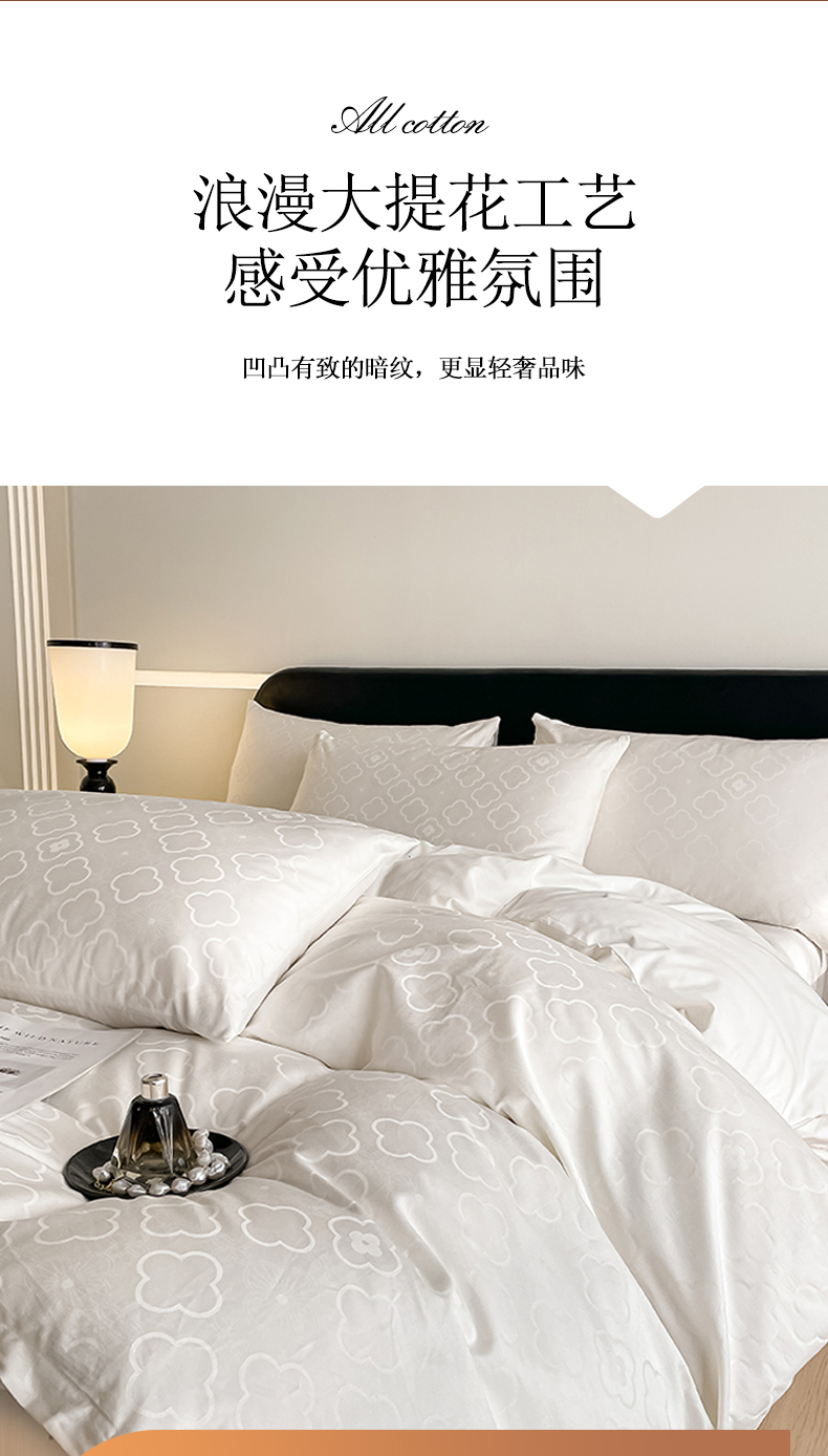 当前位置: 91家纺网 > 商品网购 > 床品套件 > 四件套 > 全棉普通四件套 > 琪格格纺织 2026新款纯棉全棉60s贡缎轻奢大提花四件套 纯棉贡缎 薇妮莎白