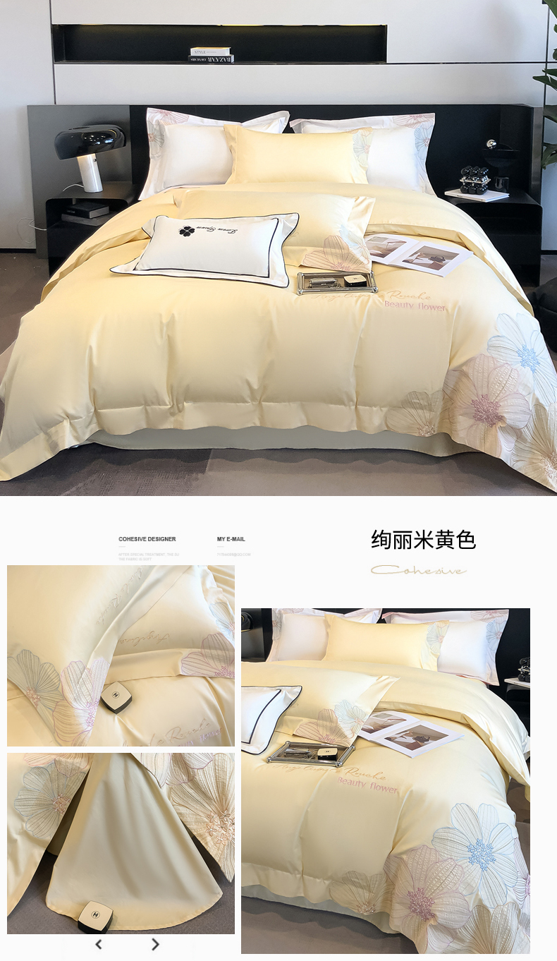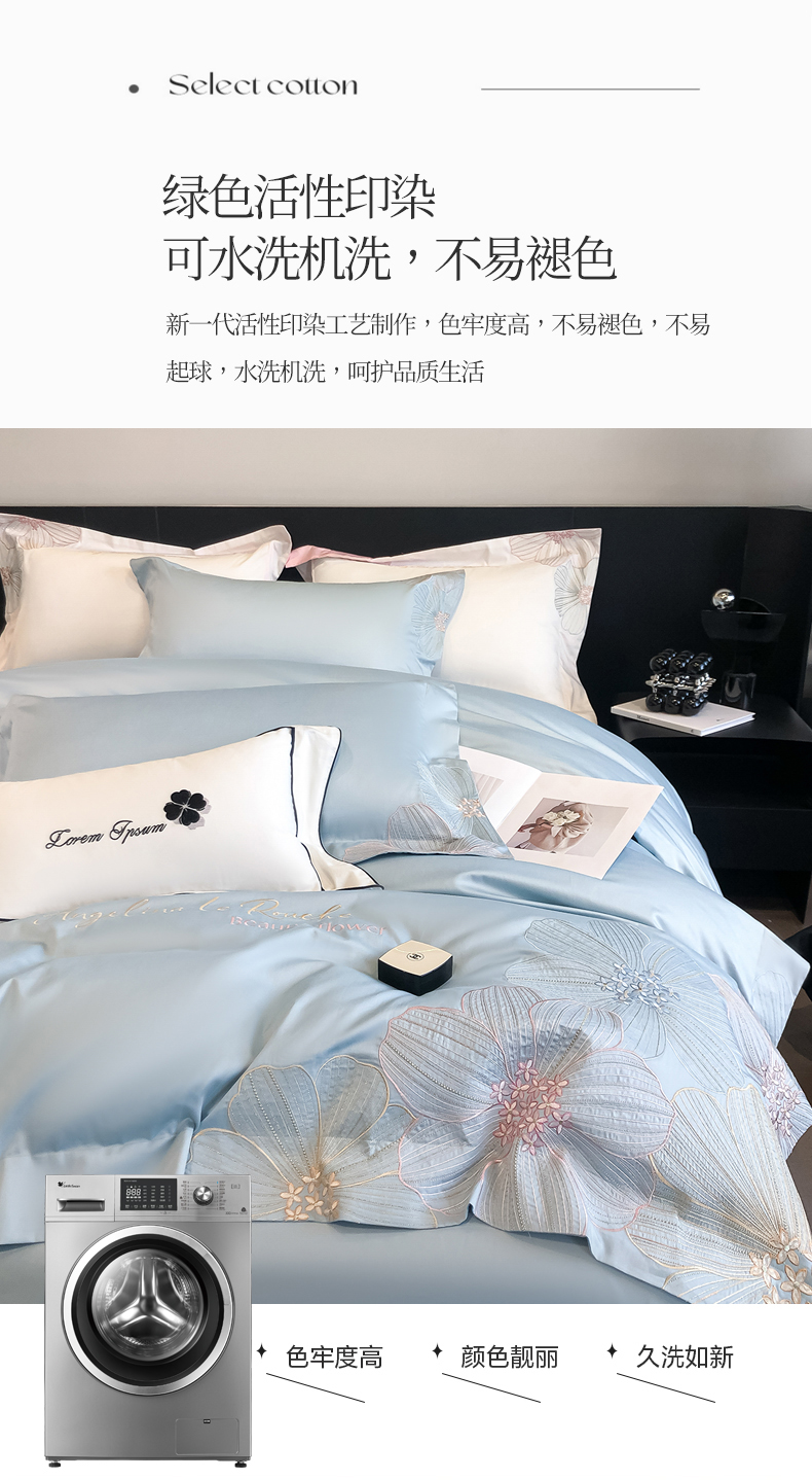 (总)星蕴家纺 2026新款50贡缎长绒棉纯棉绣花四件套-花瑾,花瑾-邂逅粉,花瑾-晴山蓝,花瑾-梦幻紫,花瑾-清新绿