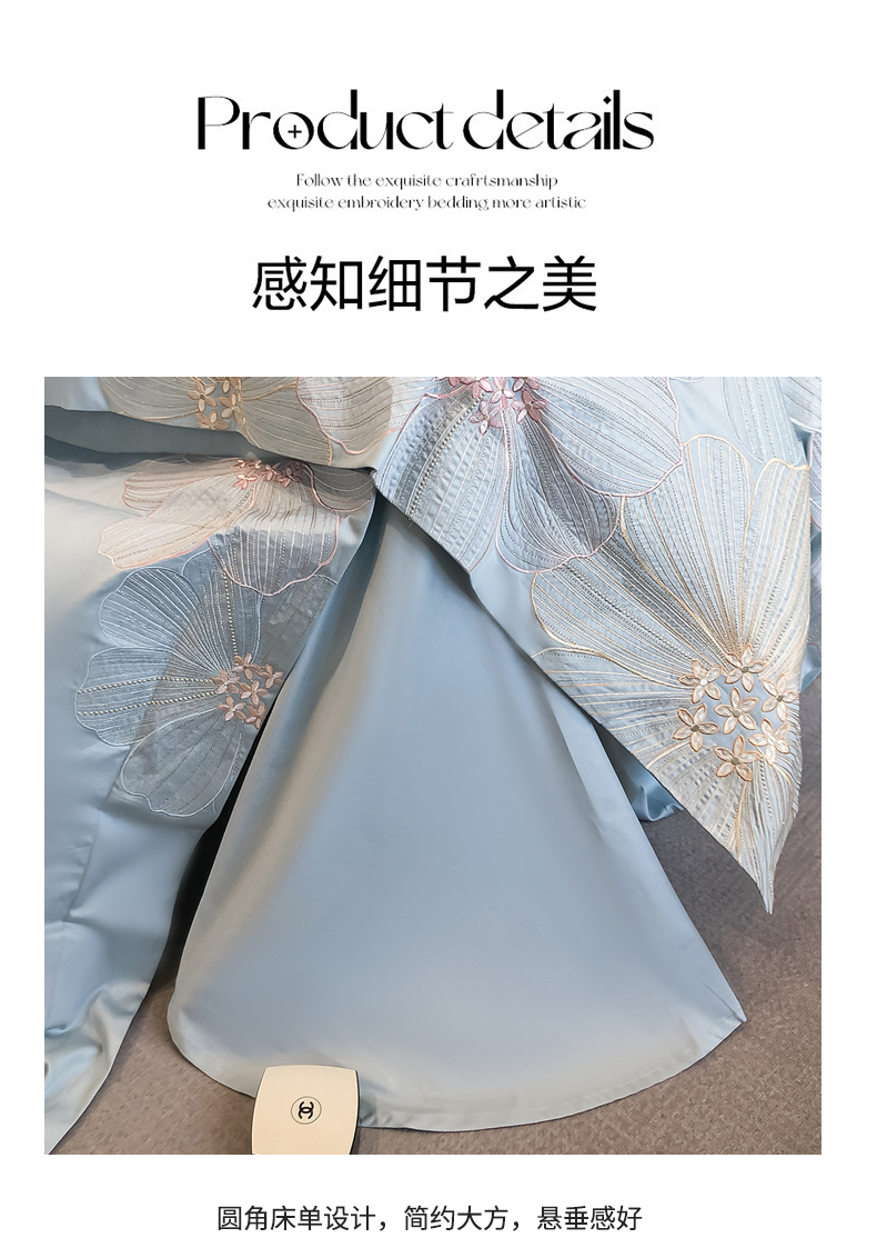 (总)星蕴家纺 2025新款新疆贡缎全棉刺绣四件套-黛尔【高档礼盒包装】,繁星蓝,白拼玉,浅香槟,雅灰粉