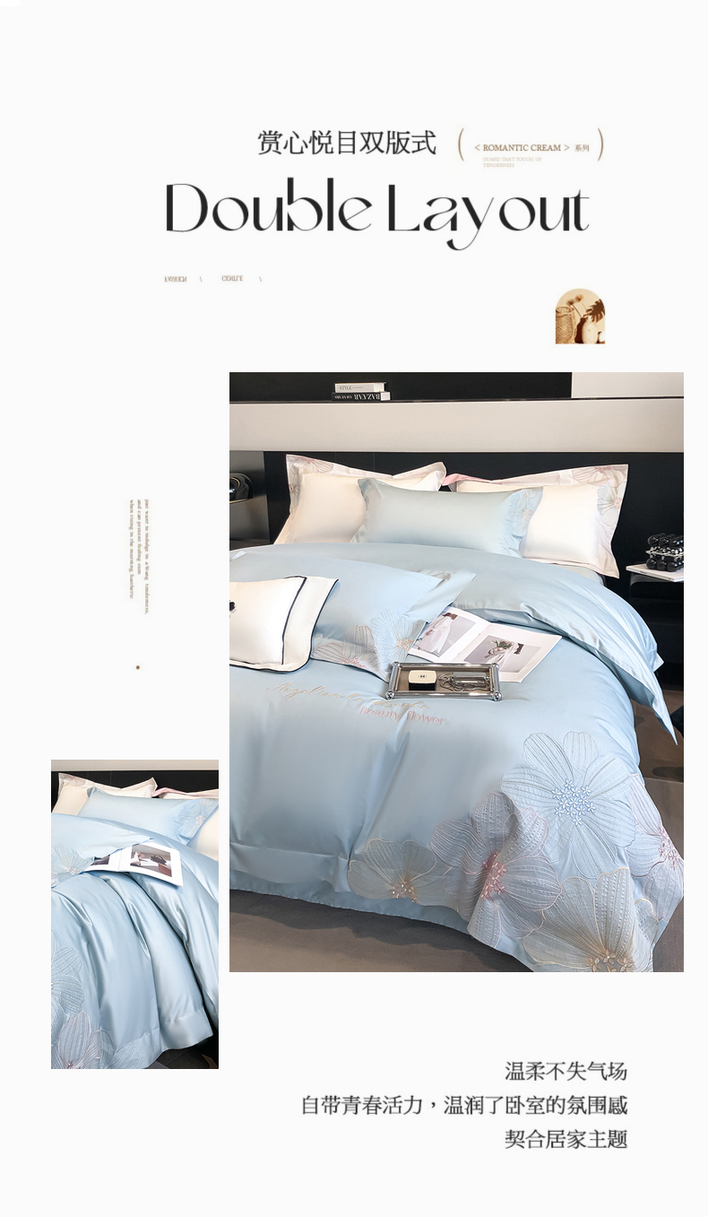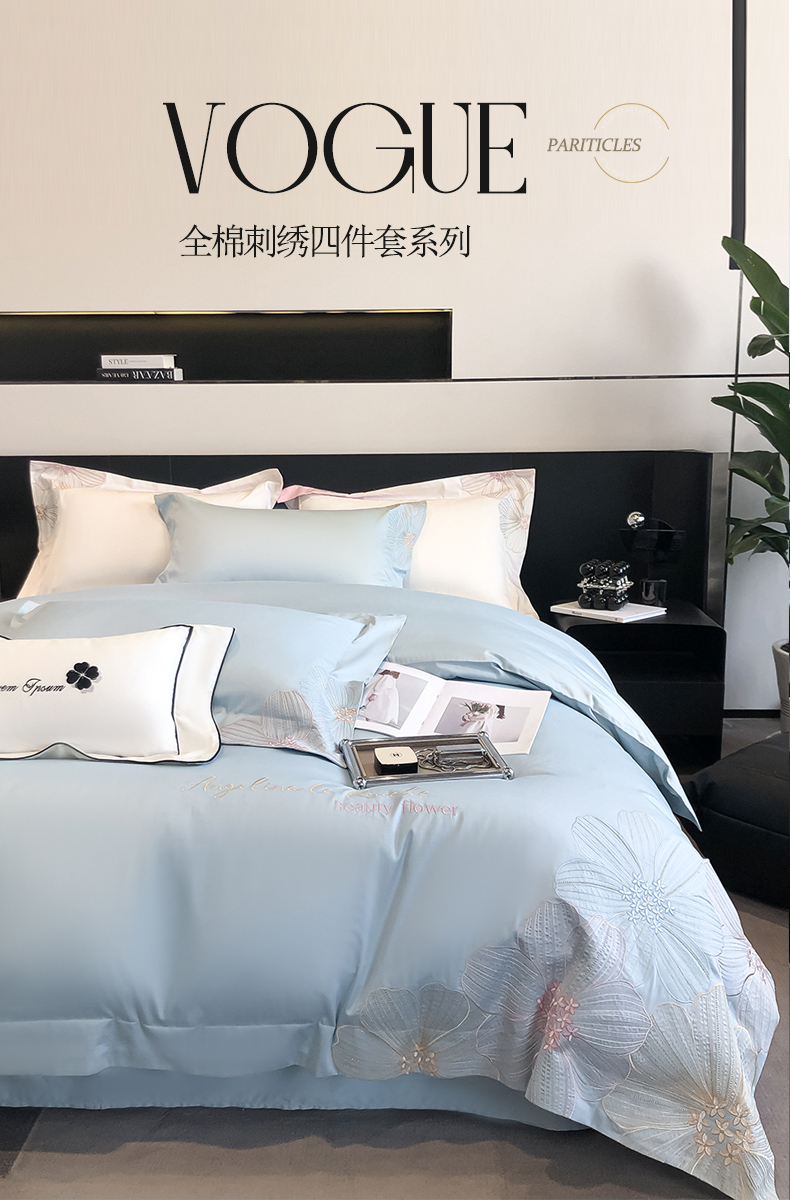 (总)星蕴家纺 2026新款双股长绒棉全棉纯棉刺绣四件套-柏林系列,柏林 贵族白,柏林 星空灰,柏林 云山蓝,柏林 香槟金,柏林 可可粉