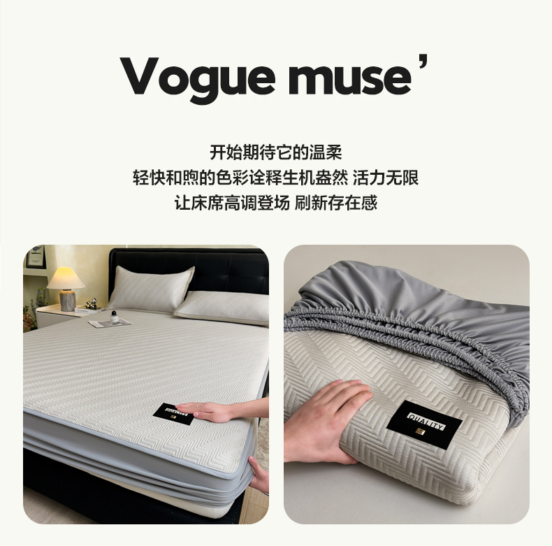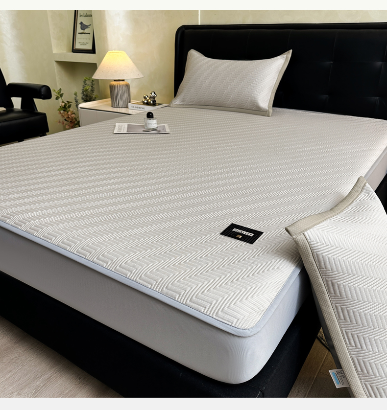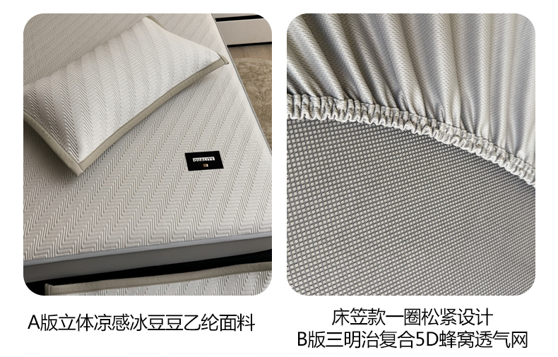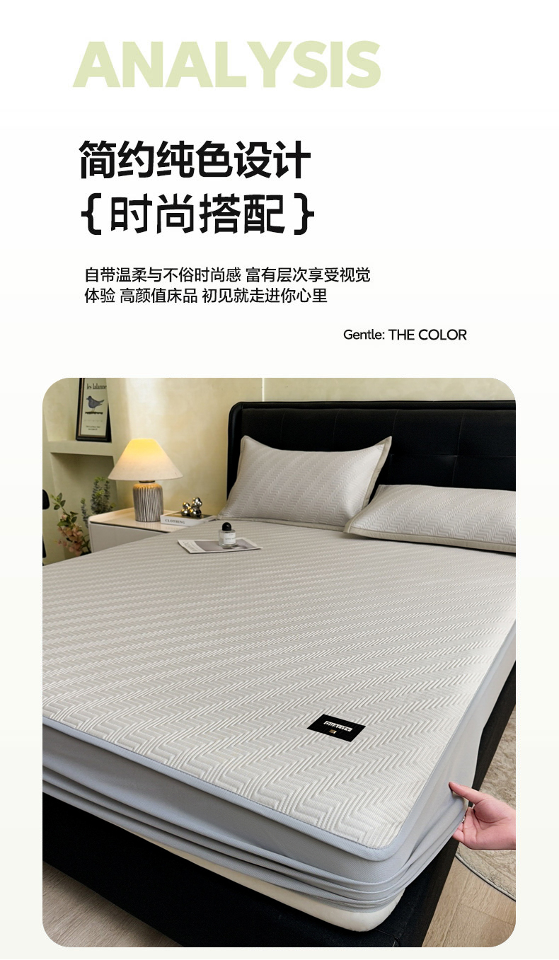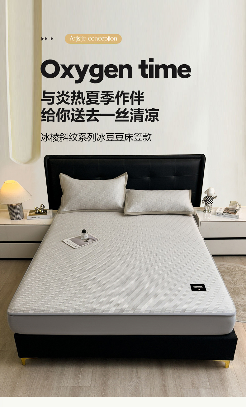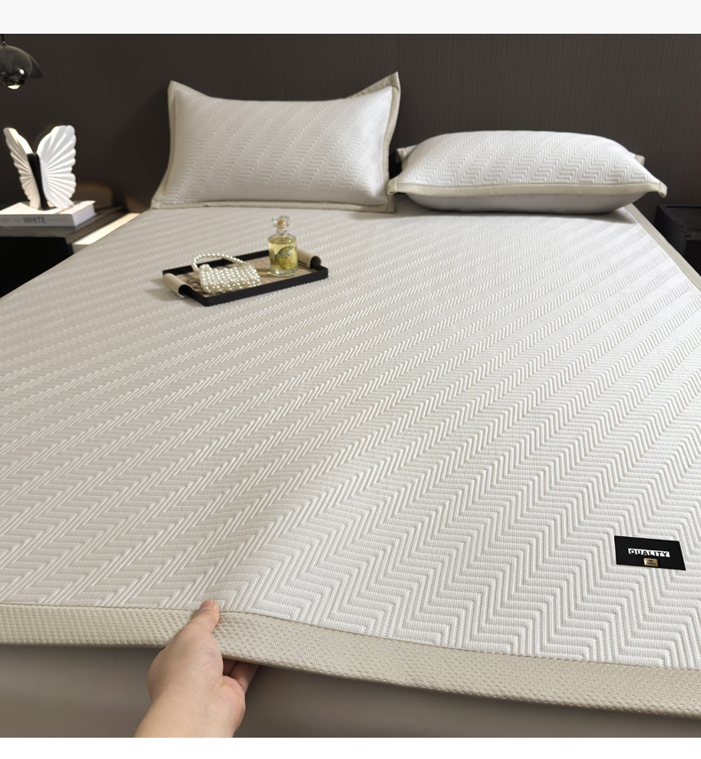 • 91家纺网 家纺一手货源 找家纺 慕木家纺 2026新款A类高克重三明治复合乙纶提花冰豆豆凉席床笠冰棱斜纹系列(提供买家秀) 冰棱斜纹-卡其床笠款