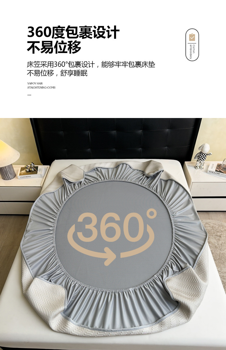 慕木家纺 2026新款A类高克重三明治复合乙纶提花冰豆豆凉席床笠冰棱斜纹系列(提供买家秀) 冰棱斜纹-卡其床笠款