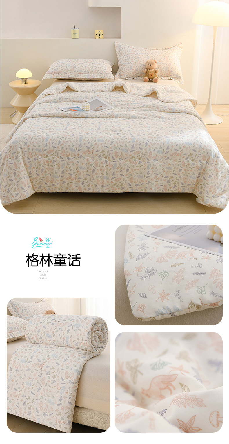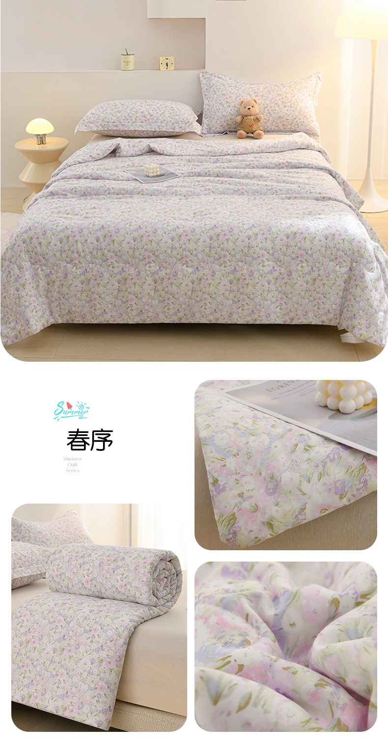 商品名称:珍贝家纺 2026新款全棉双层纱夏被被子被芯 春序