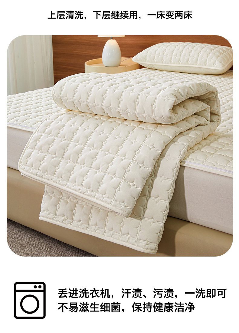 (总)居眠 2026新款防水防滑夹棉床护垫-花叶,花叶-白,花叶-粉,花叶-灰,花叶-卡,叠拍
