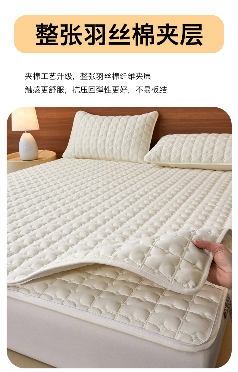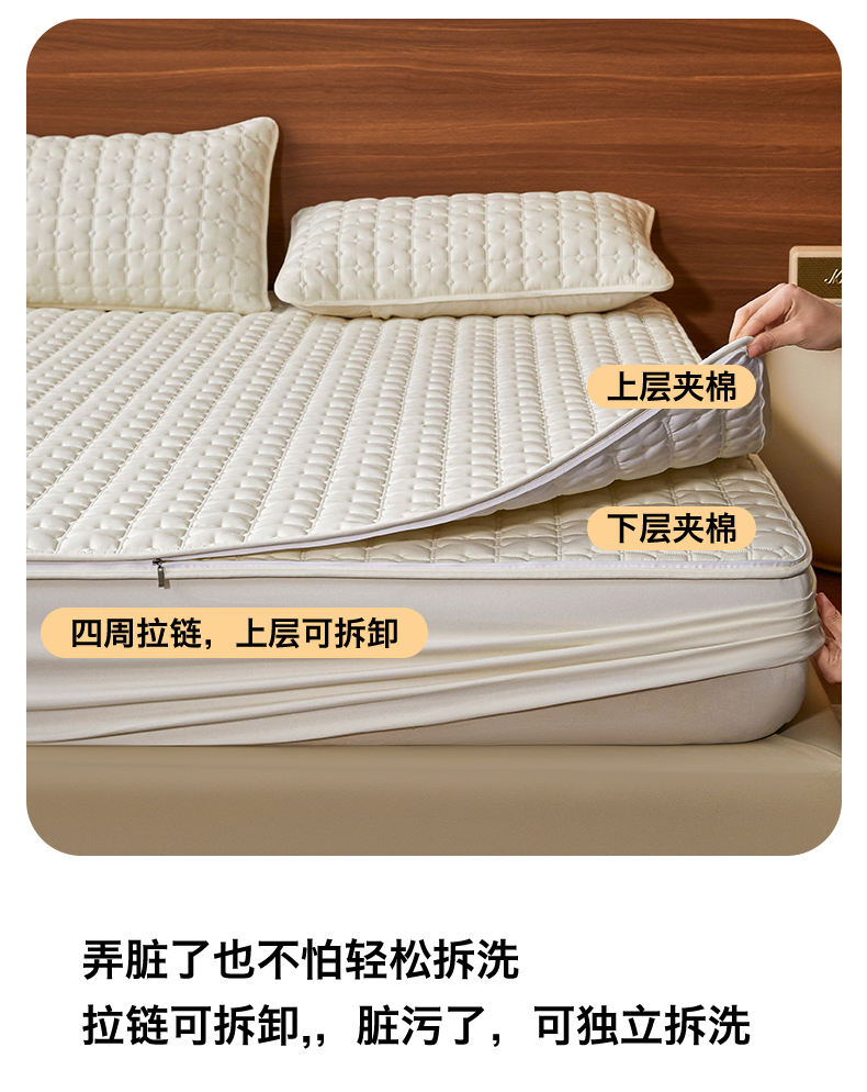 (总)居眠 2025新款防水夹棉床笠-清雅,清雅-粉色,清雅-灰色,清雅-卡其,清雅-绿色,清雅-米白,清雅-深蓝