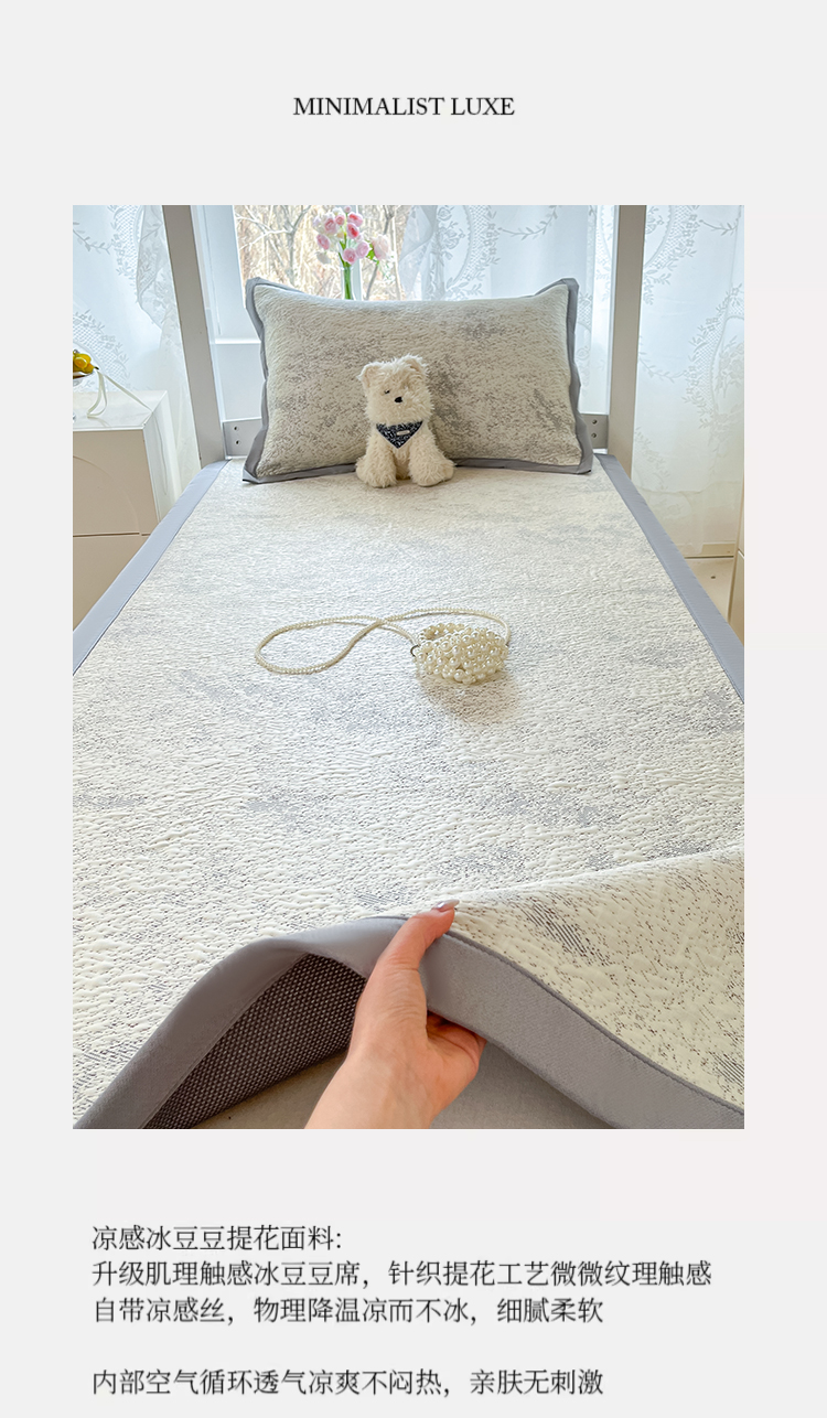 (总)川悦生活 2026新款PE凉感提花豆豆席平铺款三件套,费尔冰雪,尼尔-粉,尼尔-星灰,朴朴小旺,甜心-奶粉,甜心-水蓝,甜心-月灰,甜心奶猫,夏季岛屿-粉,夏季岛屿-月银,星花小猫,月桂-月银,奶油星月,爱心猫咪-茶青,爱心猫咪-月白,清爽蓝调,小熊仔,樱桃果塔,沐月玫瑰-清粉