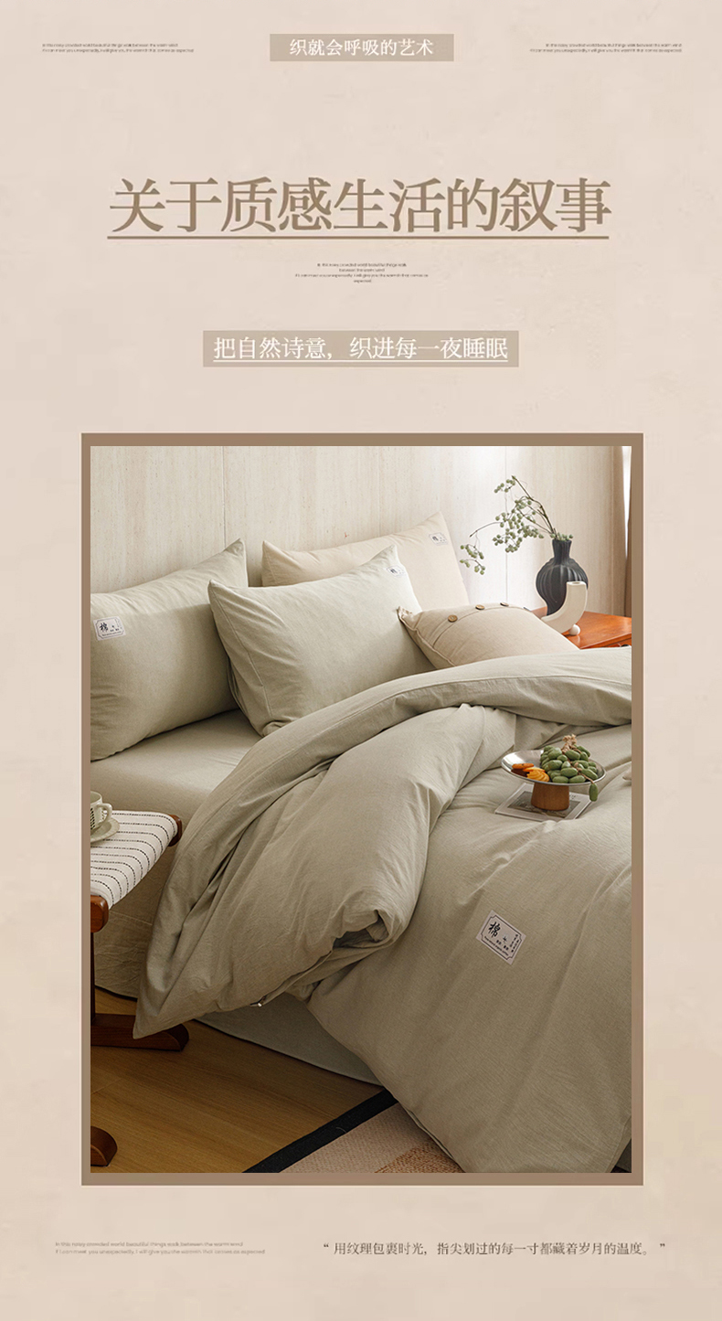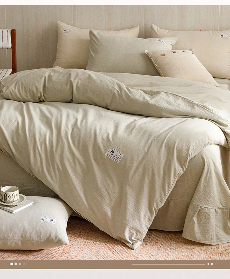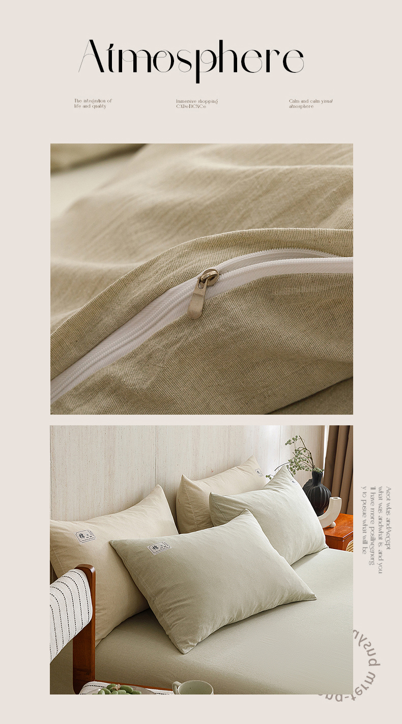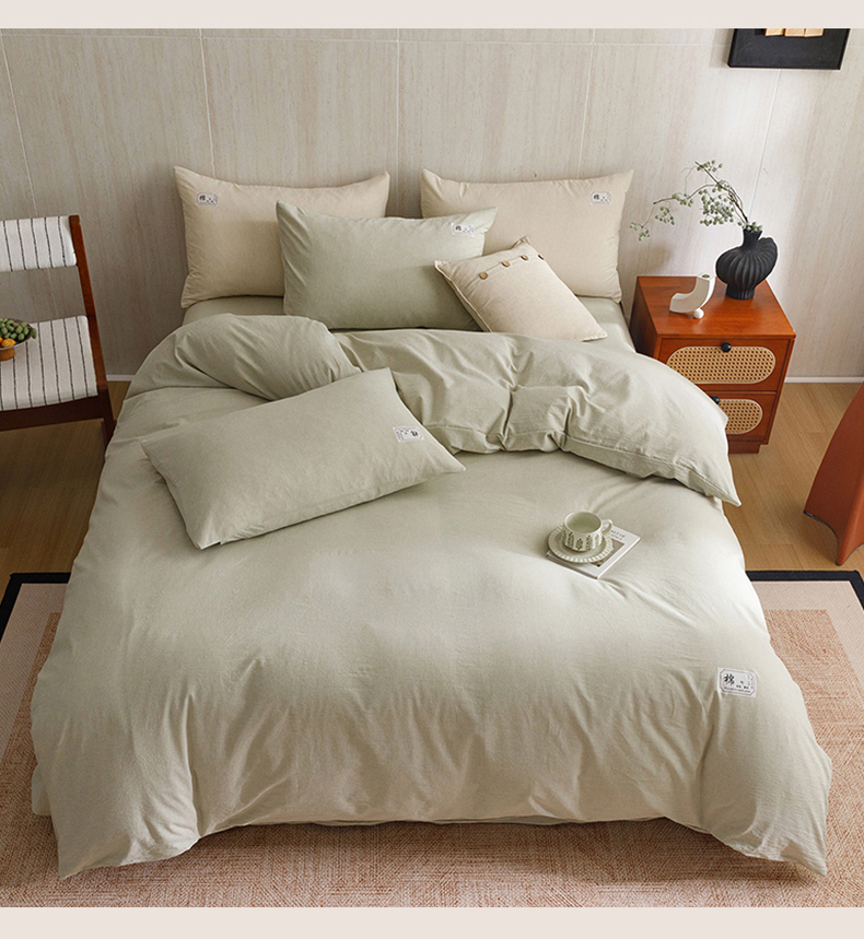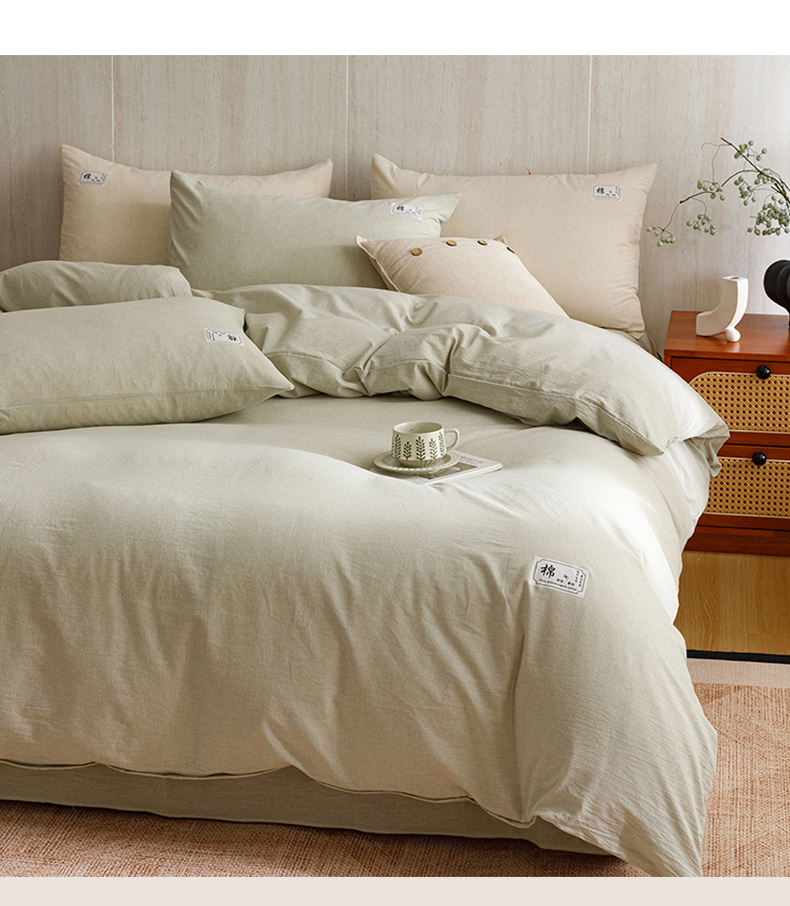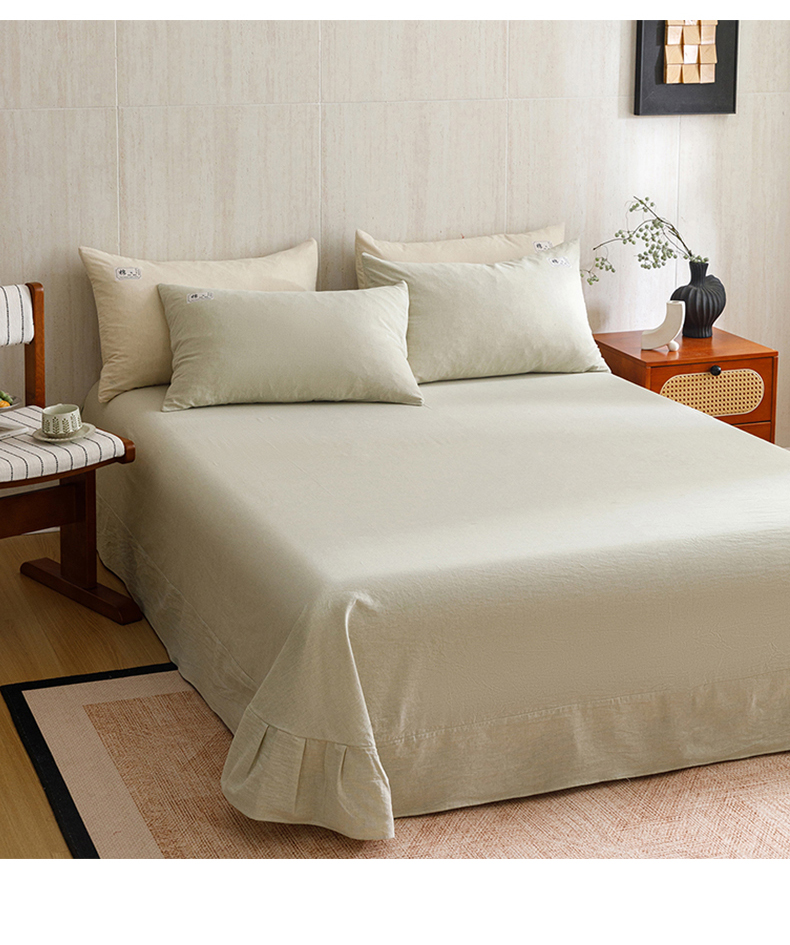 当前位置: 91家纺网 > 商品网购 > 床品套件 > 四件套 > 全棉普通四件套 > 悦然毛巾被 2026春夏新款A类全棉棉麻纯色四件套-山月素系列 山月素麻绿