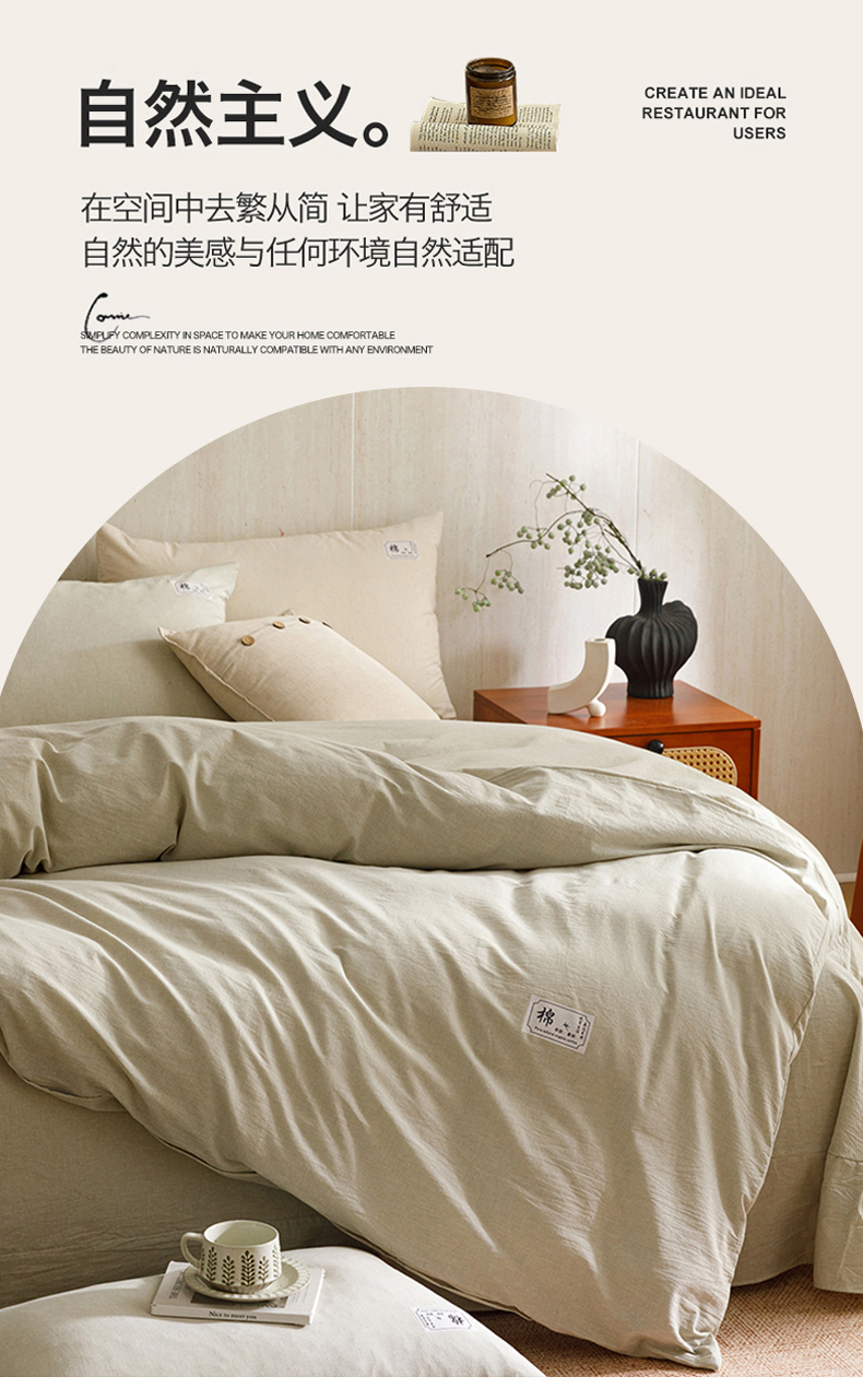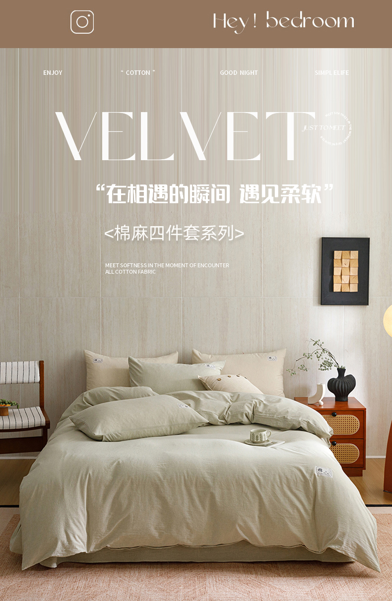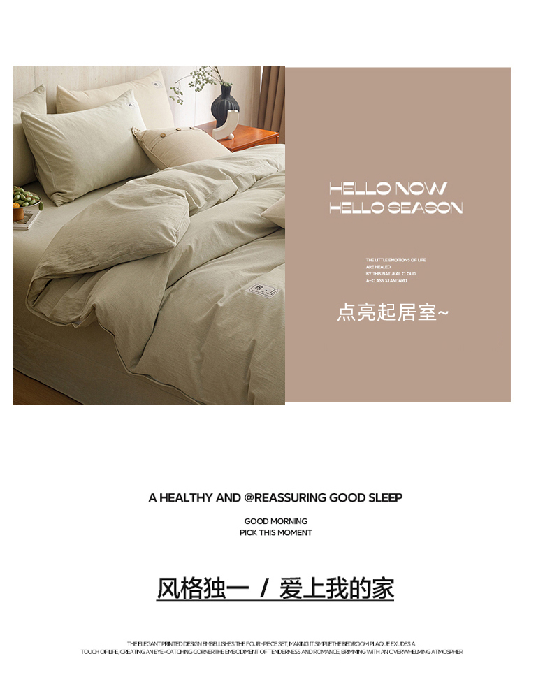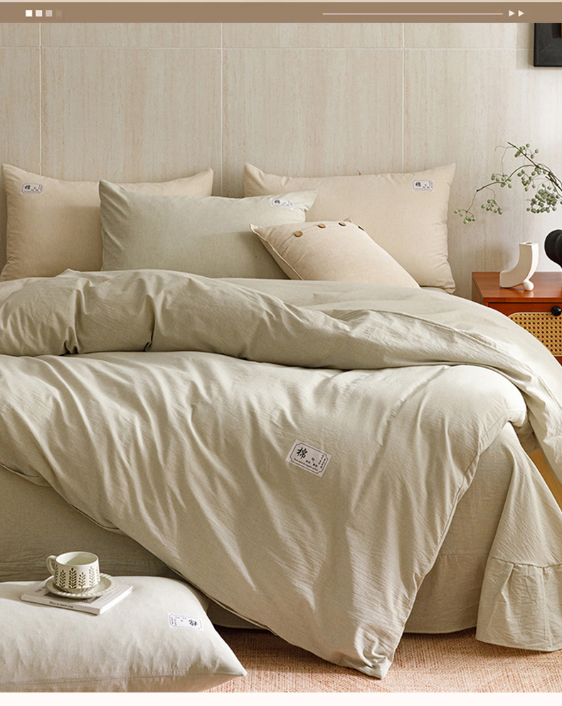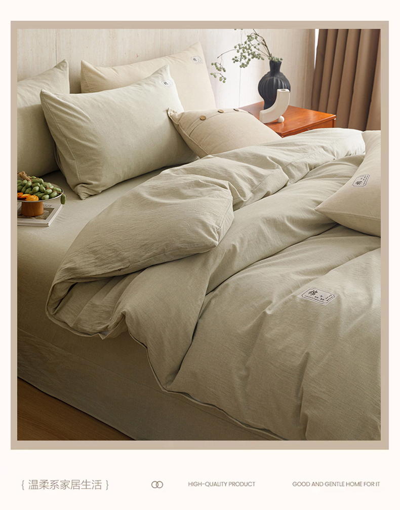 当前位置: 91家纺网 > 商品网购 > 床品套件 > 四件套 > 全棉普通四件套 > 悦然毛巾被 2026春夏新款A类全棉棉麻纯色四件套-山月素系列 山月素麻绿