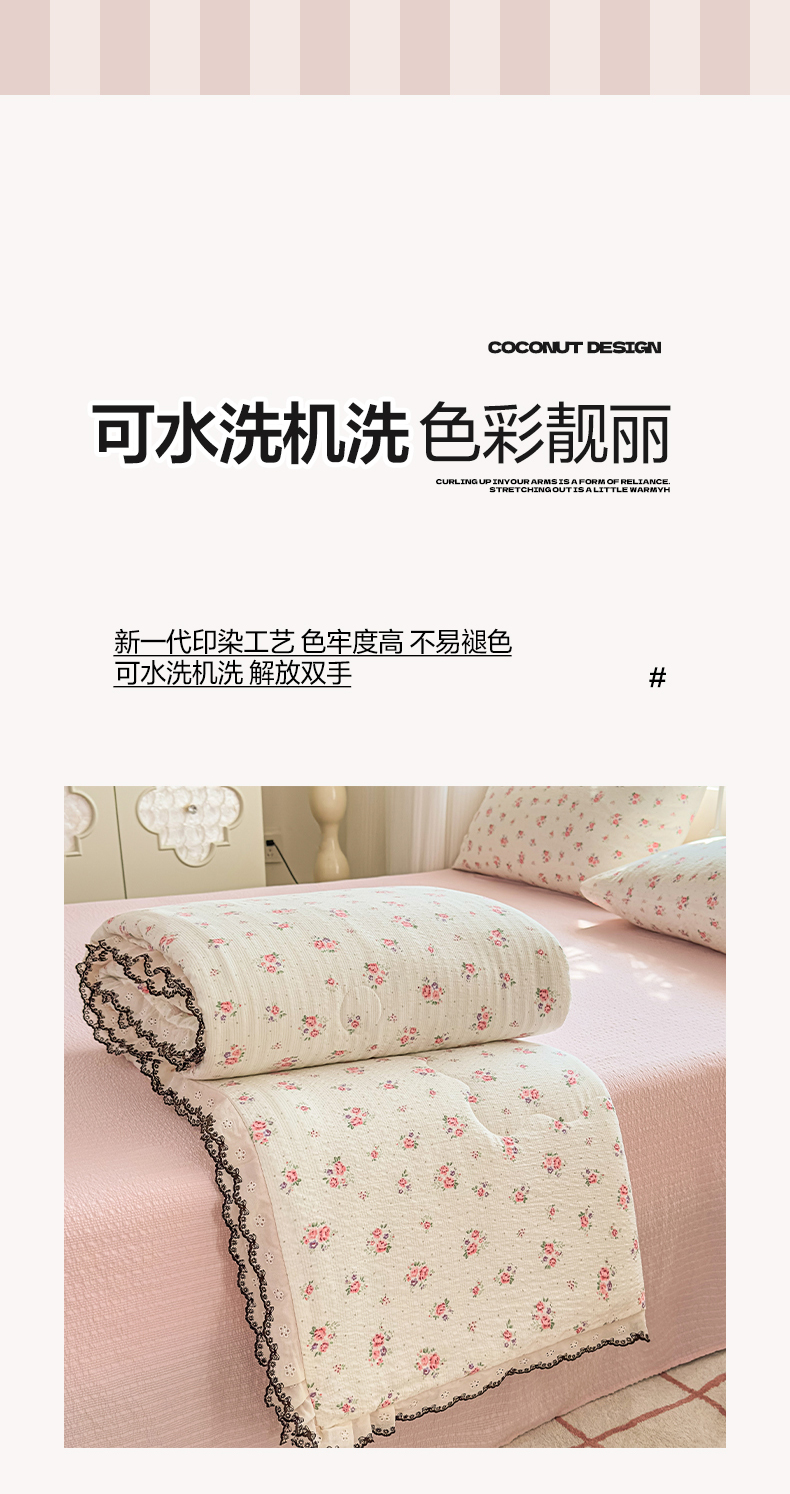 商品名称:眠势力 2026新款泡芙纱夏被四件套全棉花边空调被夏凉被薄被子 红果