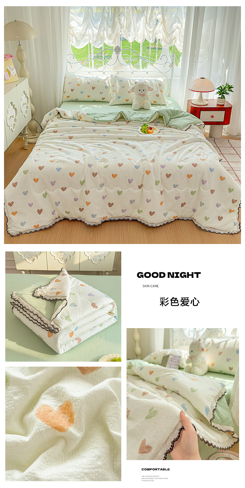(总)眠势力 2026新款泡芙纱夏被四件套全棉花边空调被夏凉被薄被子,彩色爱心,蝶语,飞飞马,红果,美莓果,泡芙甜心,曲奇小熊,兔小妹,汪汪队,星星人,遇见花开