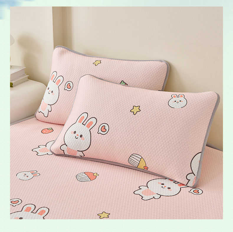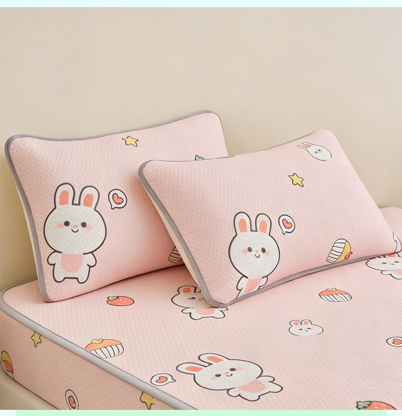 商品名称:奇丝雅 2026新款夏季A类卡通印花冰豆豆冰丝凉席枕套凉感家用可机洗单人学生宿舍48×74cm一只一对 巴比兔