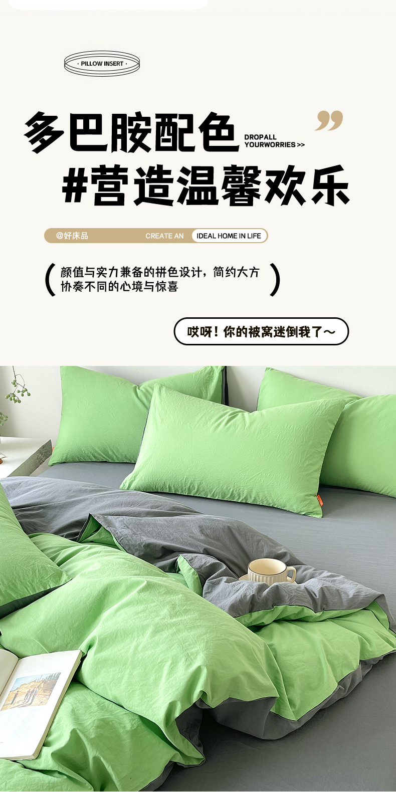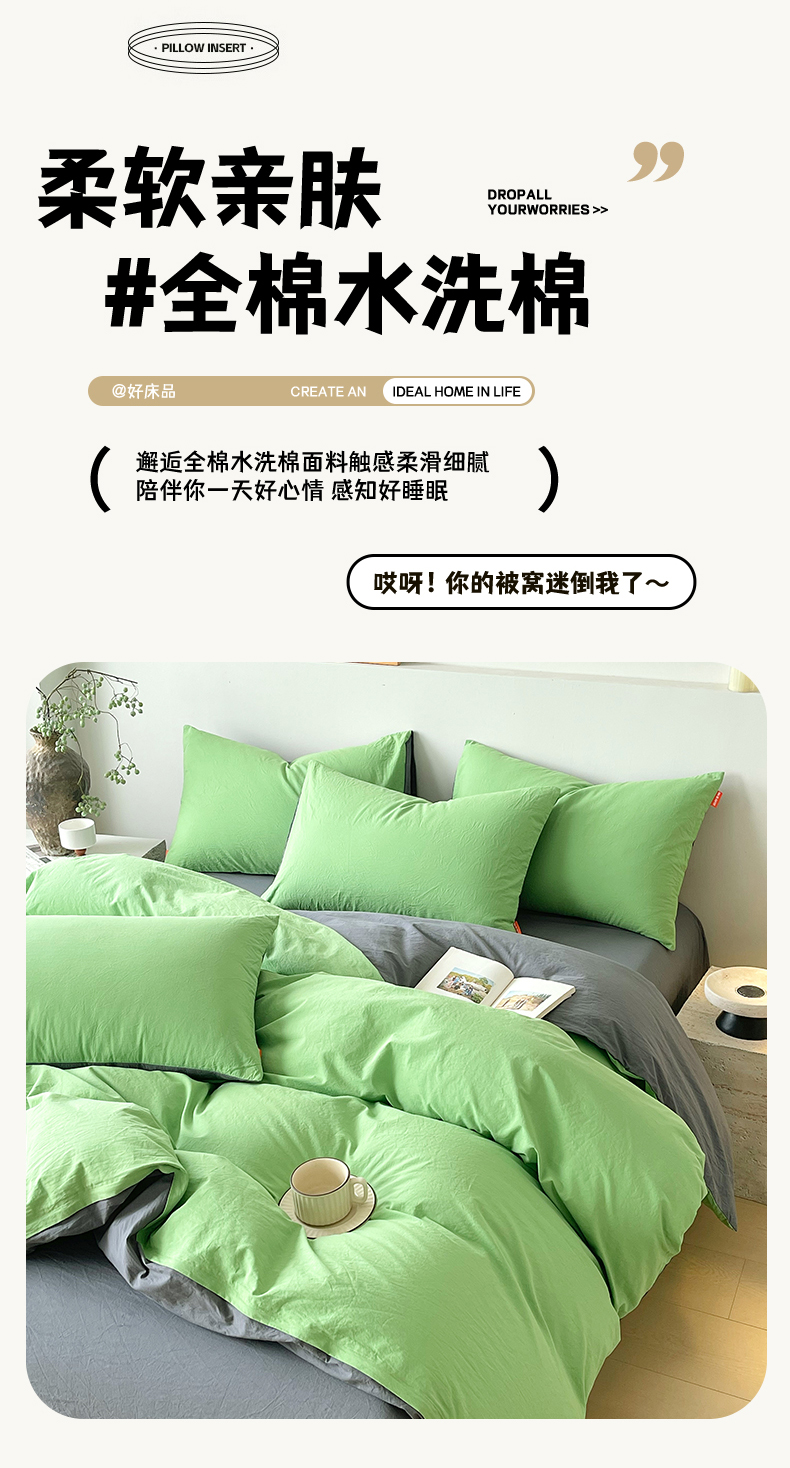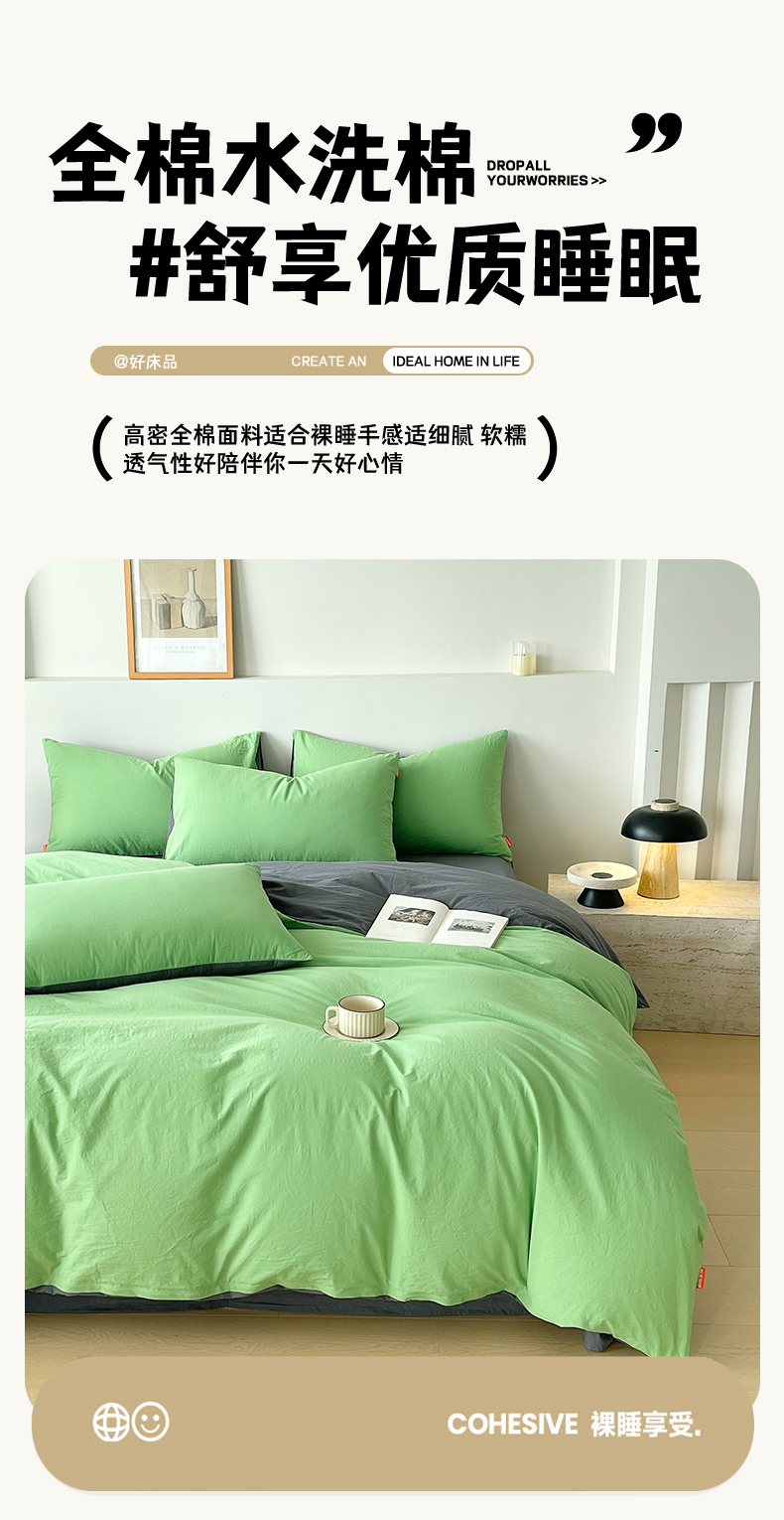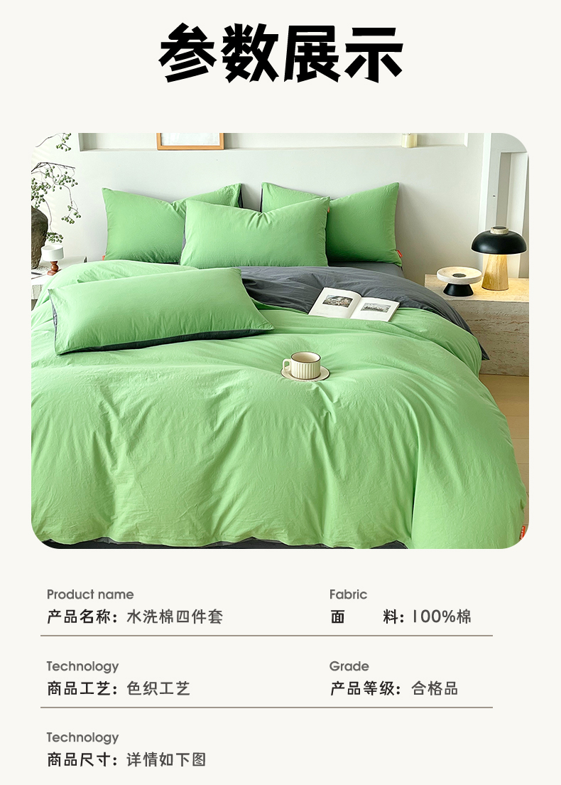 当前位置: 91家纺网 > 商品网购 > 床品套件 > 四件套 > 全棉普通四件套 > 春皖家纺 2026春夏新款双拼全棉纯棉水洗棉四件套 青草绿-墨灰