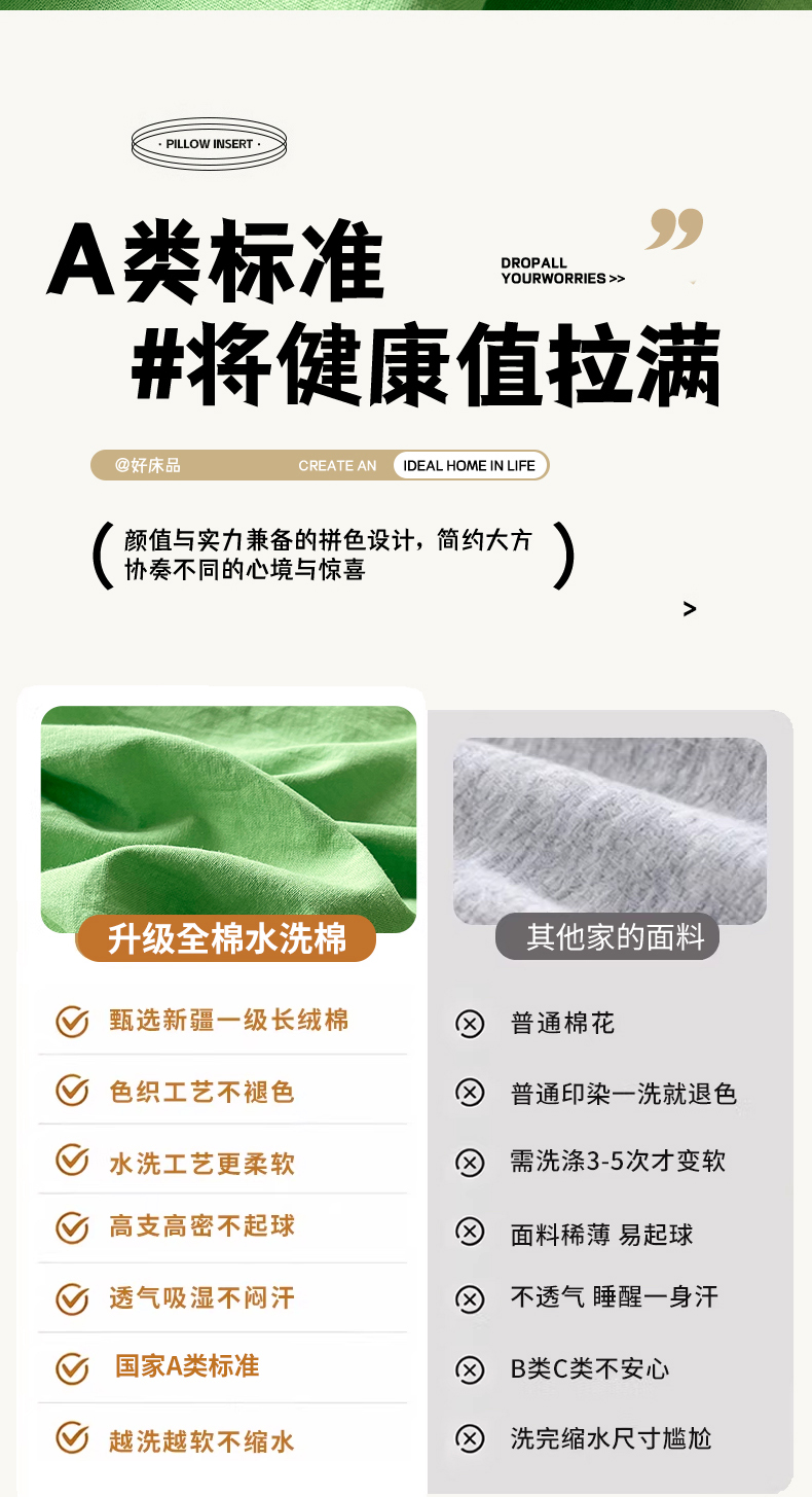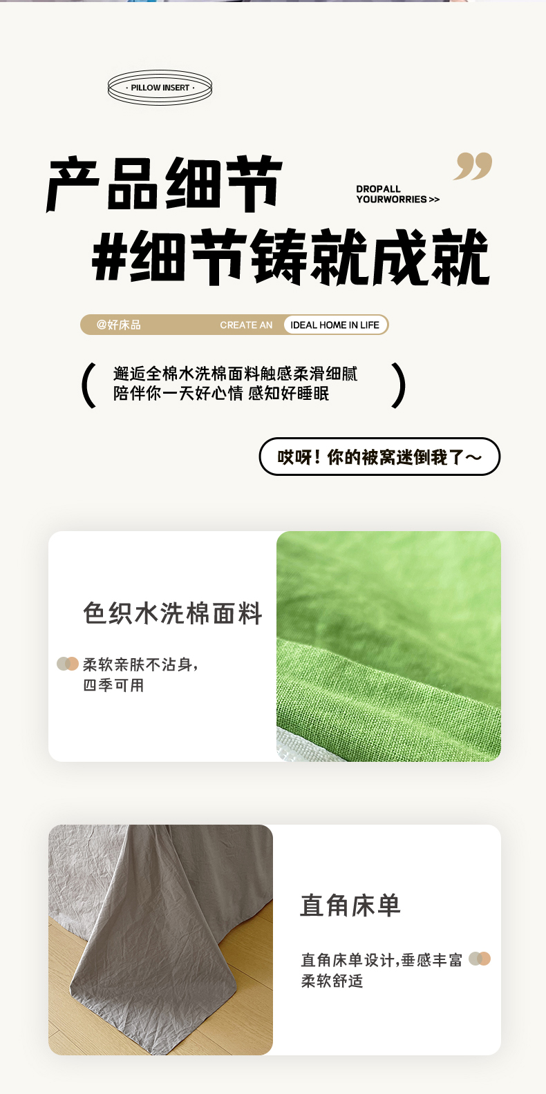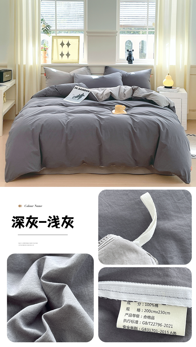 当前位置: 91家纺网 > 商品网购 > 床品套件 > 四件套 > 全棉普通四件套 > 春皖家纺 2026春夏新款双拼全棉纯棉水洗棉四件套 青草绿-墨灰