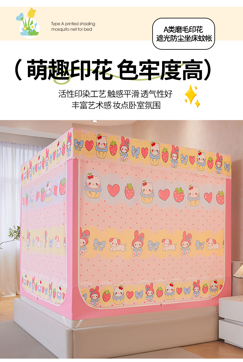 当前位置: 91家纺网 > 商品网购 > 床上用品 > 蚊帐 > 坐床式蚊帐 > 迪凡保罗蚊帐 2026新款2606专版卡通回底全底AB版遮光帘坐床蚊帐 爱心蛋糕-无床帘