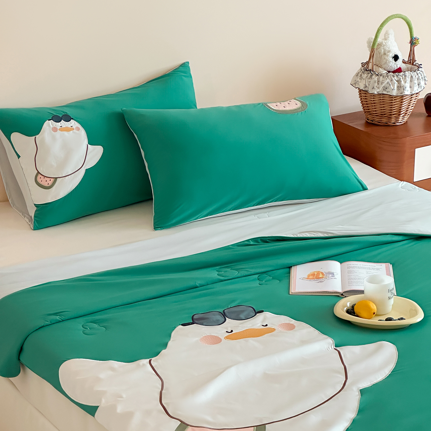 【冷凝一号】傲蕾 AL BEDDING蚕丝冰肌夏被针织凉感被子可水洗空调被夏凉被双人冰皮被冰冰鸭A类,遨游太空,缤纷乐园,布偶娃娃,蛋糕派对,独角兽奇遇记,绿野仙踪,萌宠日记,奇幻森林,青枝绿叶,晚安小熊,绣球花园,云端火车,选配精美手提包装一只