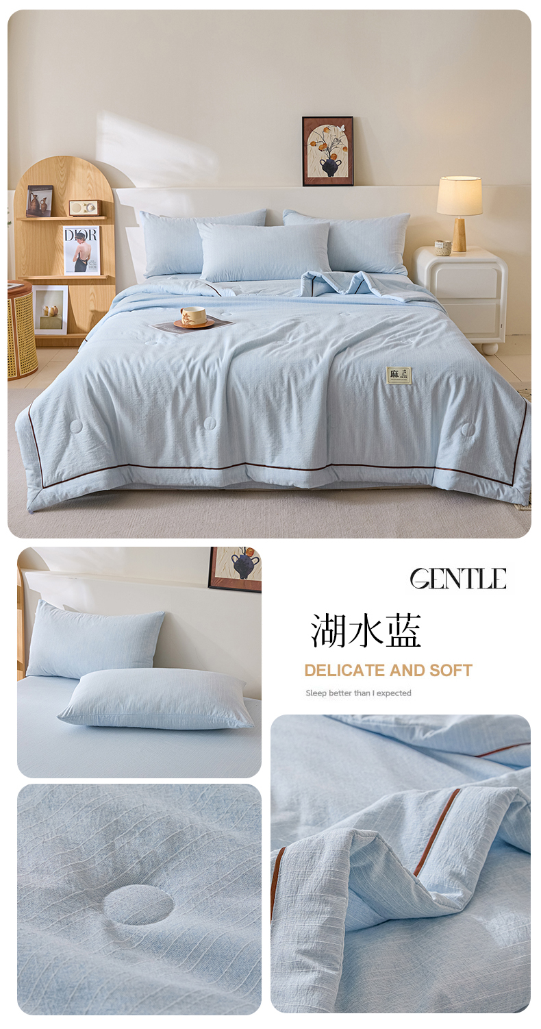 • 91家纺网 家纺一手货源 找家纺 (总)顺兴家居 2026新款提花色织水洗麻夏被夏凉被空调被四件套,色织-湖水蓝,色织-晨曦黄,色织-玫瑰粉,色织-抹茶,色织-牛仔蓝,色织-葡萄青,色织-烟灰
