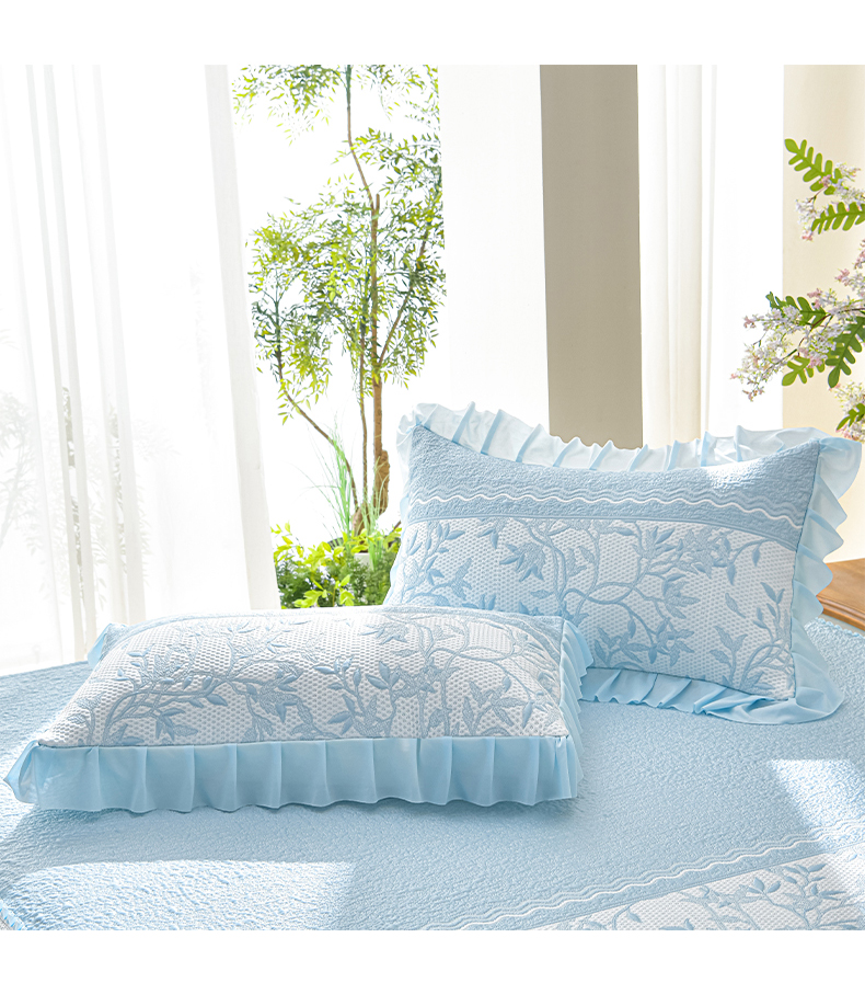商品名称:绘萱家居 2026新款PE提花冰凉豆豆床裙款凉席席子凉席 清风叶蔓-蓝