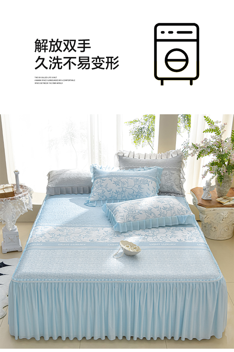 (总)绘萱家居 2026爆款冰凉豆豆凉席三件套床裙款冰丝软席子,叶影漫纱-绿,冰凉豆豆-粉,冰凉豆豆-灰,冰凉豆豆-蓝,冰凉豆豆-绿,叶影漫纱-粉,叶影漫纱-灰,叶影漫纱-蓝