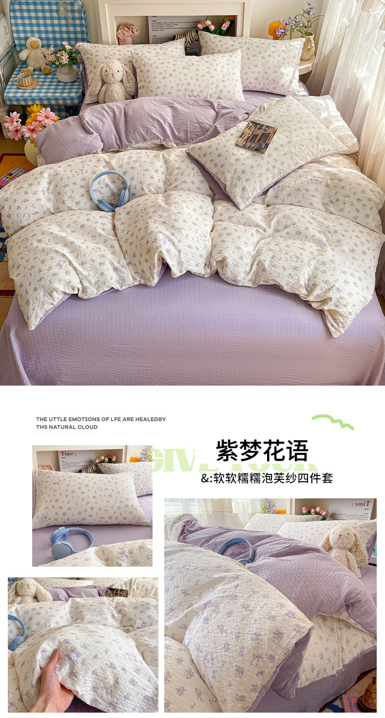 当前位置: 91家纺网 > 商品网购 > 床品套件 > 四件套 > 其它四件套 > N先生+V 13814689556 发大图/买家秀 2026新款A类软糯糯泡芙纱四件套 芷琳