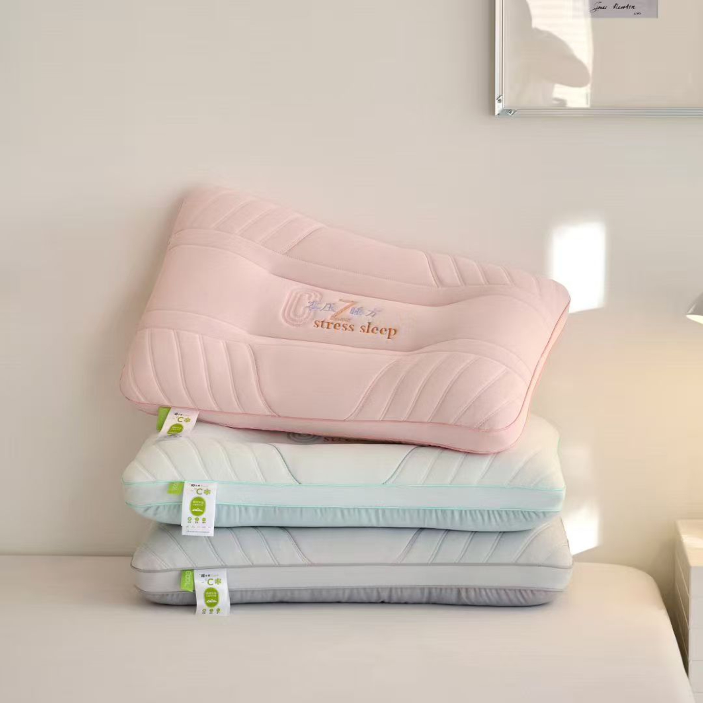 (总)剑桥枕业 2025新款三合一护颈枕40*60cm,全棉,磨毛,针织