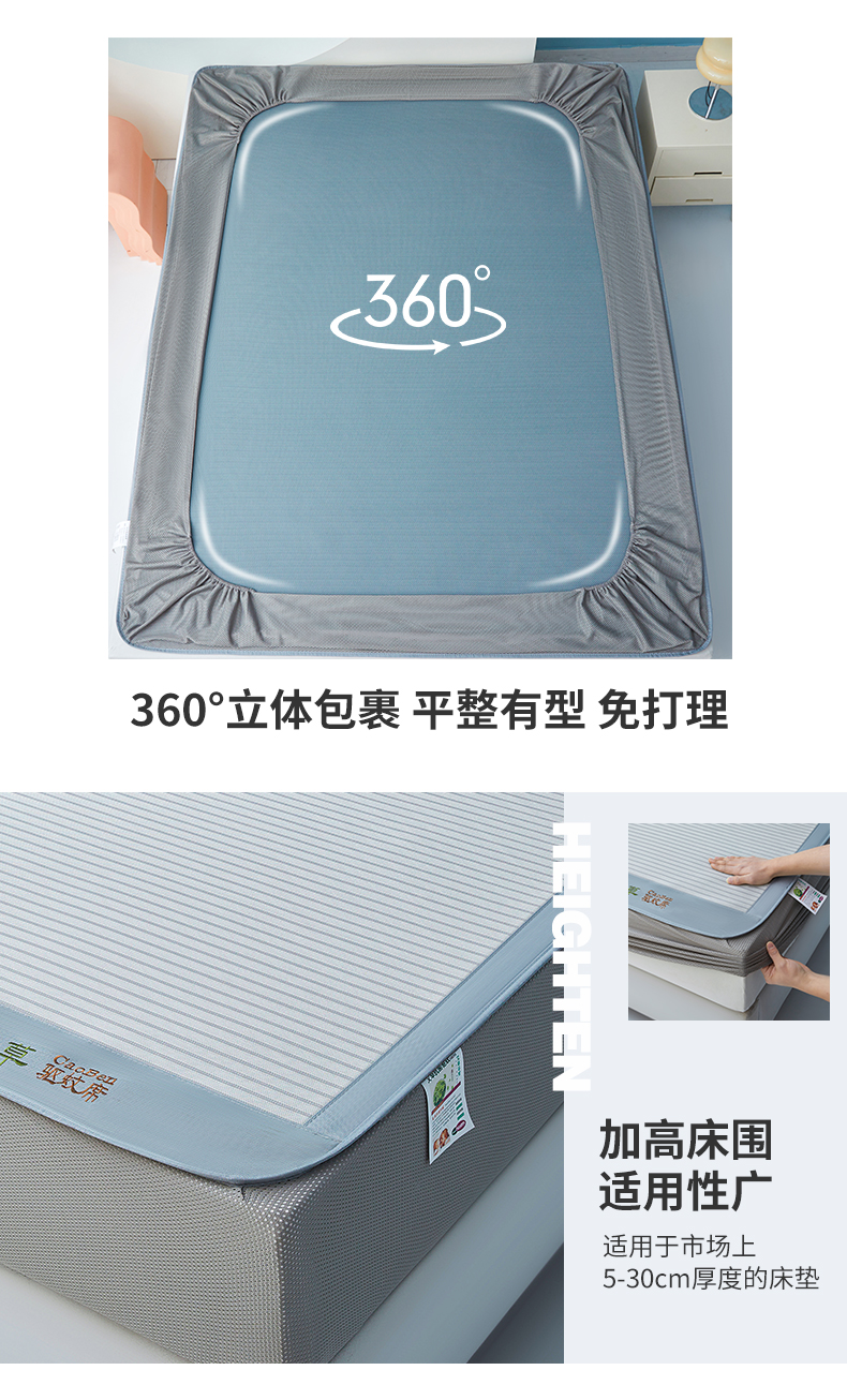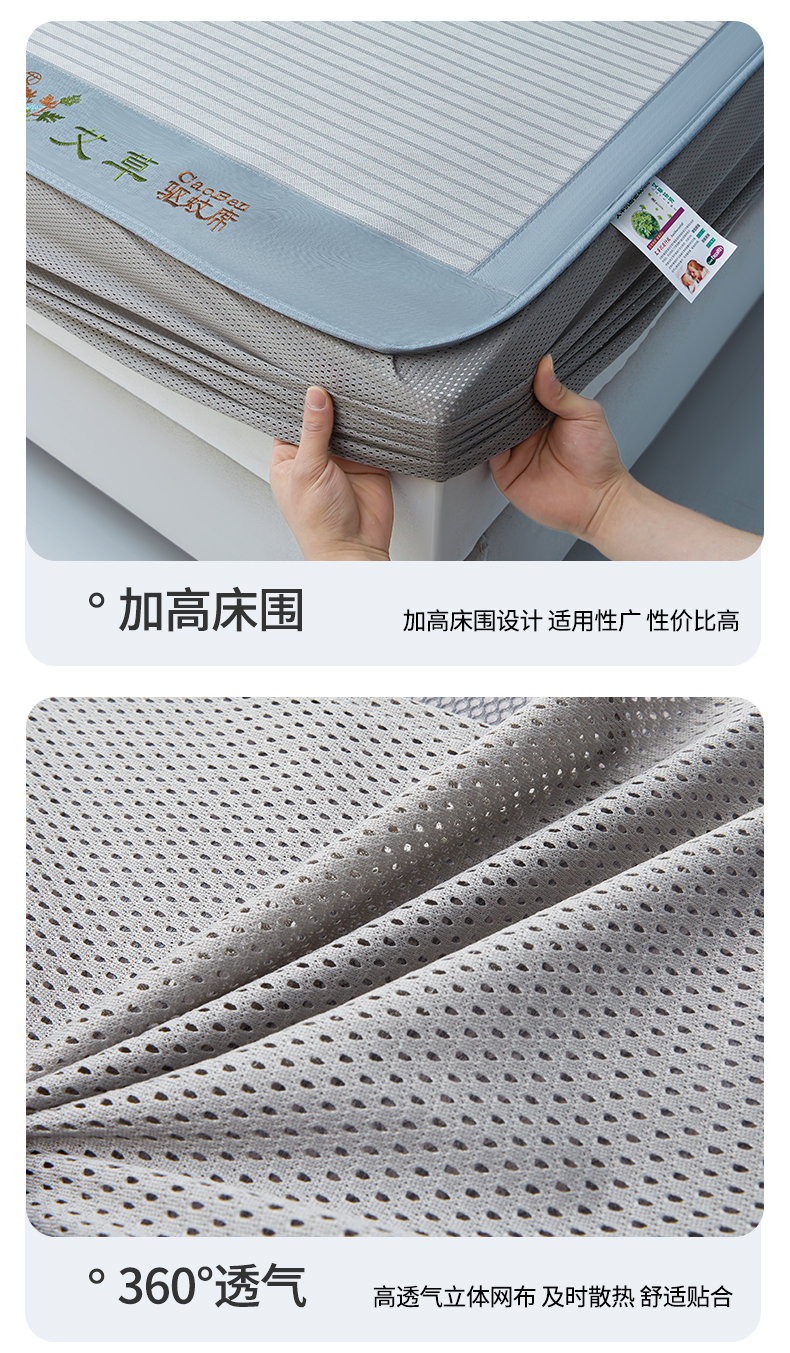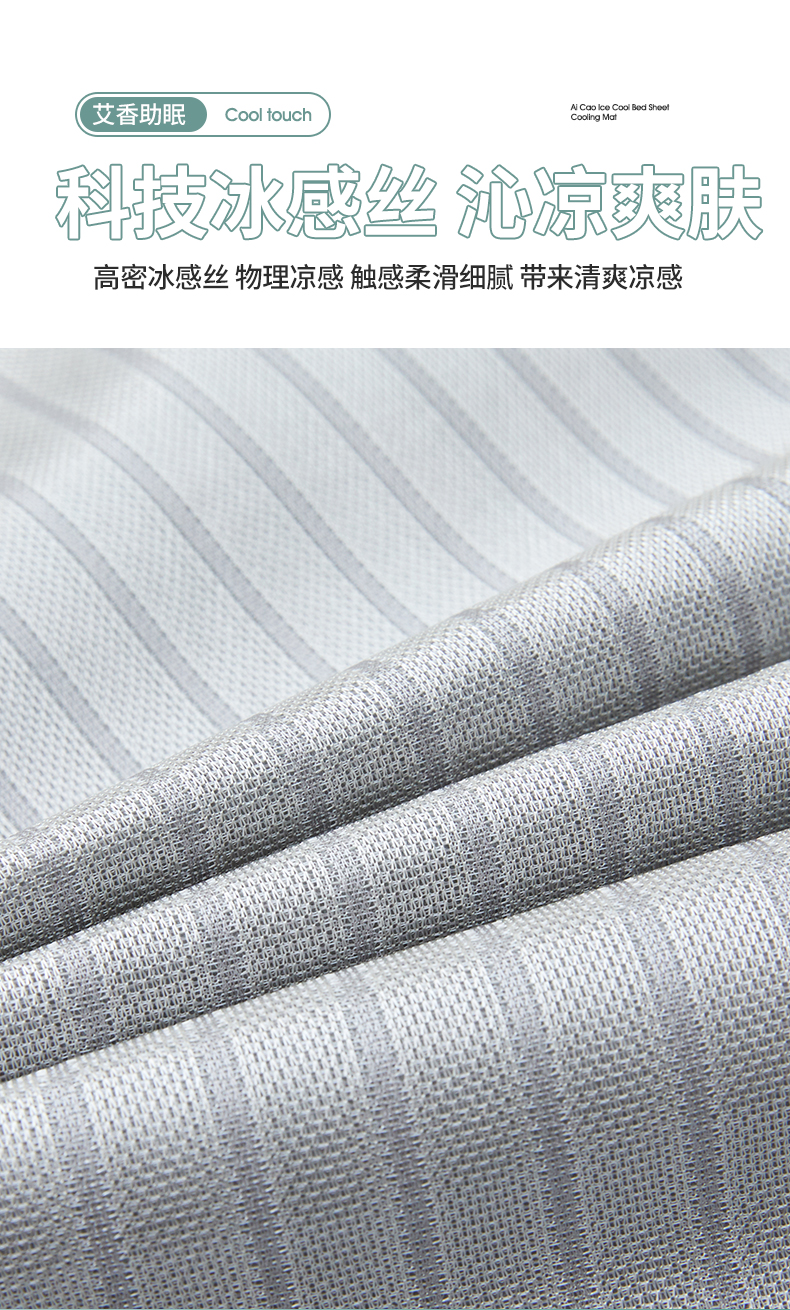 • 91家纺网 家纺一手货源 找家纺 航途席业 2026新款刺绣可水洗碳光冰丝席宽包边无纺布冰丝席艾香系列 艾香条纹床笠款绅士灰