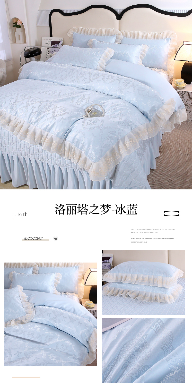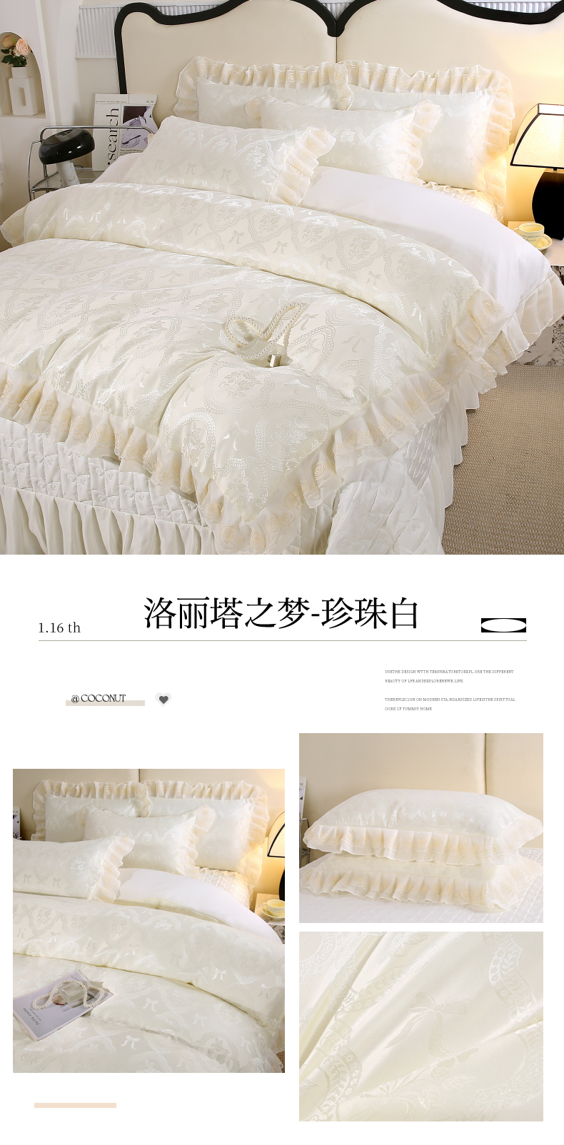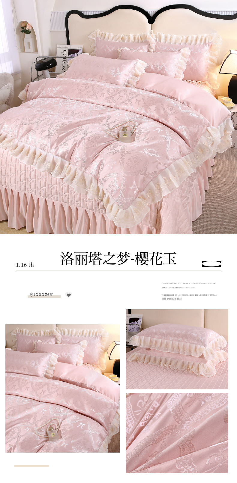 当前位置: 91家纺网 > 商品网购 > 床品套件 > 四件套 > 其它四件套 > 提花大世界 2026新款轻奢法式蕾丝花边款丝滑水洗真丝天丝提花床单床笠床盖四件套 洛丽塔之梦-樱花玉