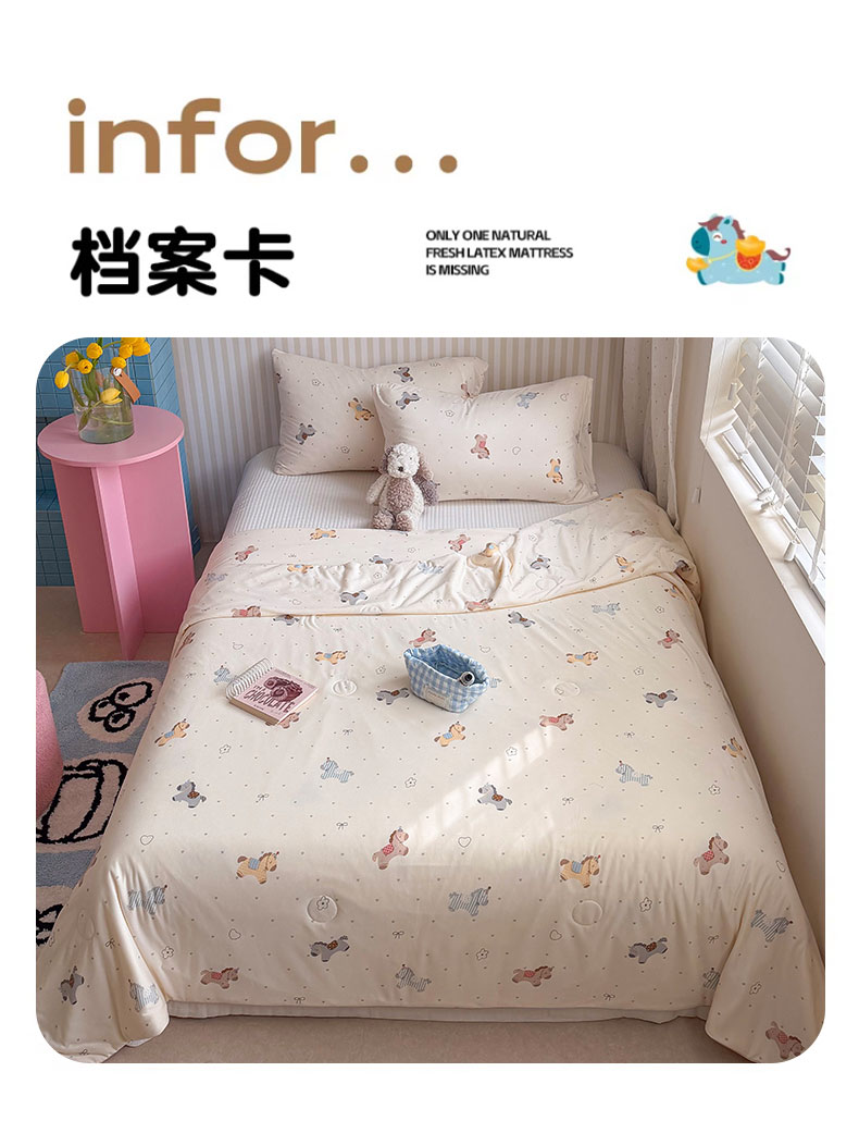 被子 > 夏被 > 桃子家居 2026新款A类卡通小清新奶乎乎高品质牛奶丝软糯针织棉嵌绳工艺夏被系列 针织嵌绳-森系小马