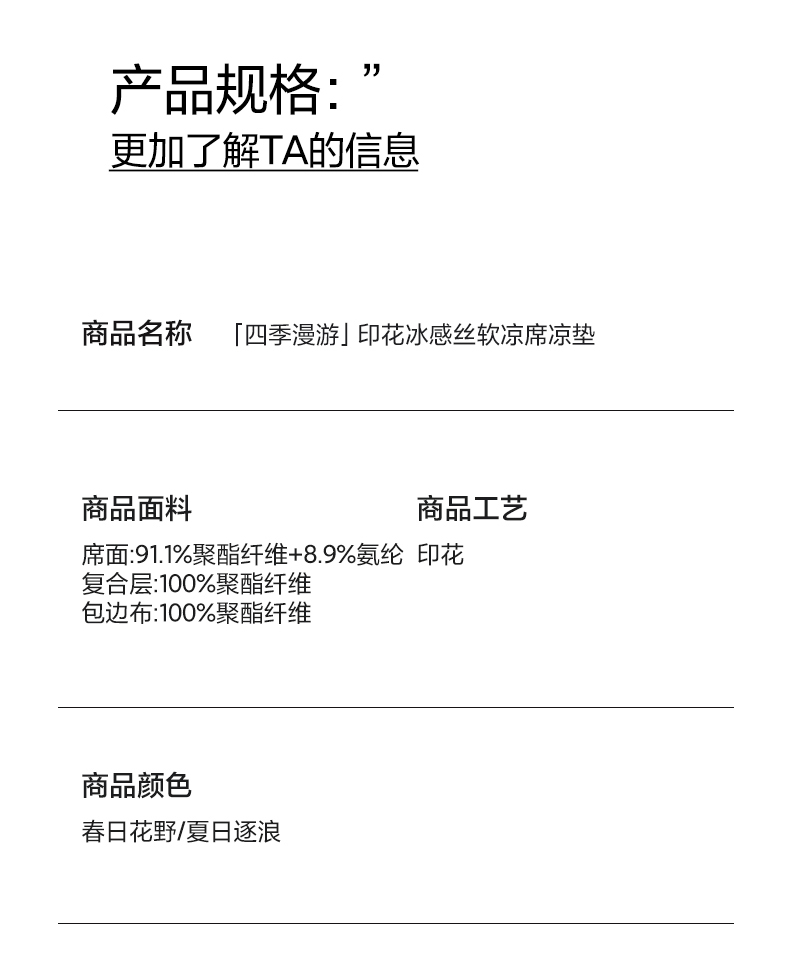 商品名称:三味舒屋 2026新款【四季漫游】印花冰感丝软凉席凉垫 夏日逐浪