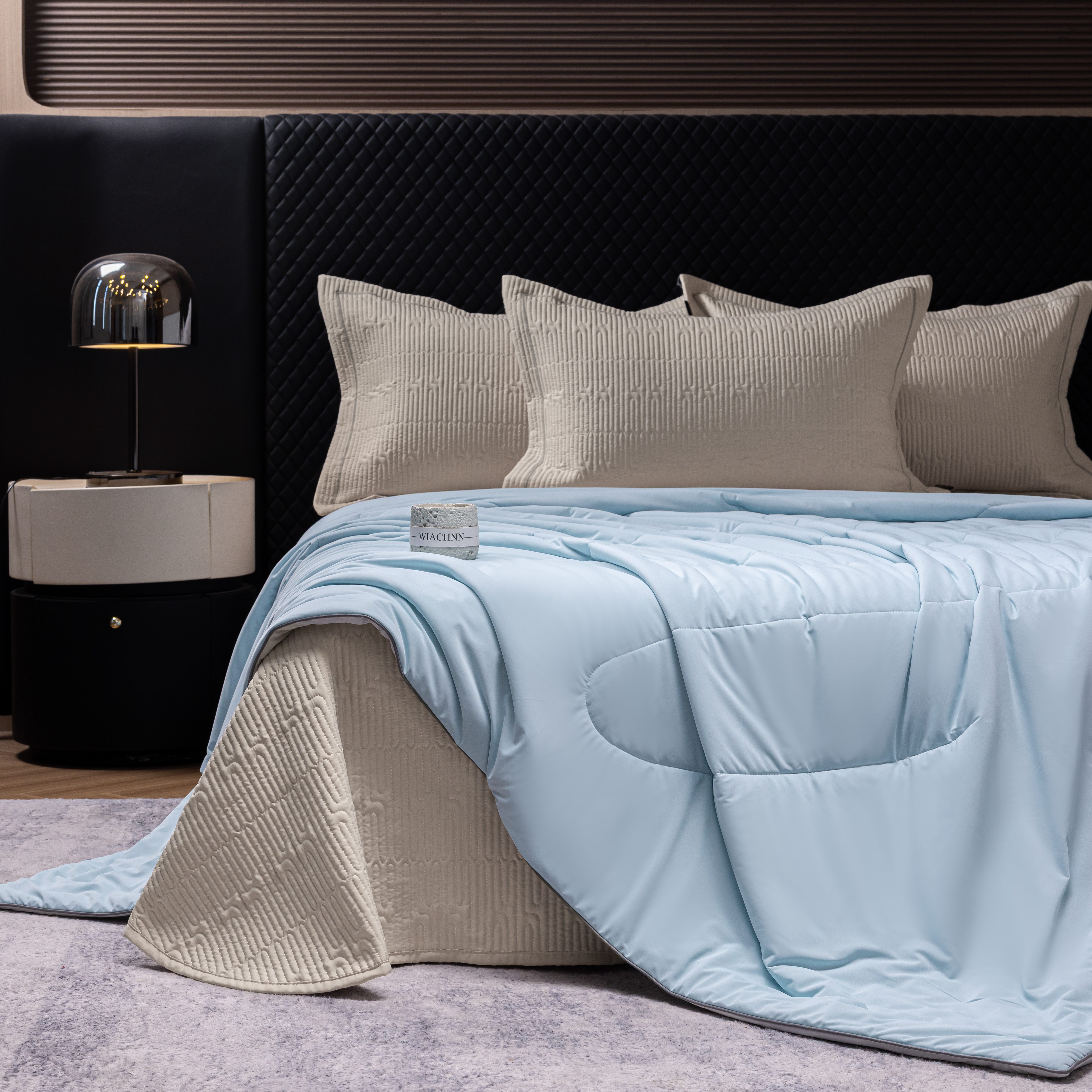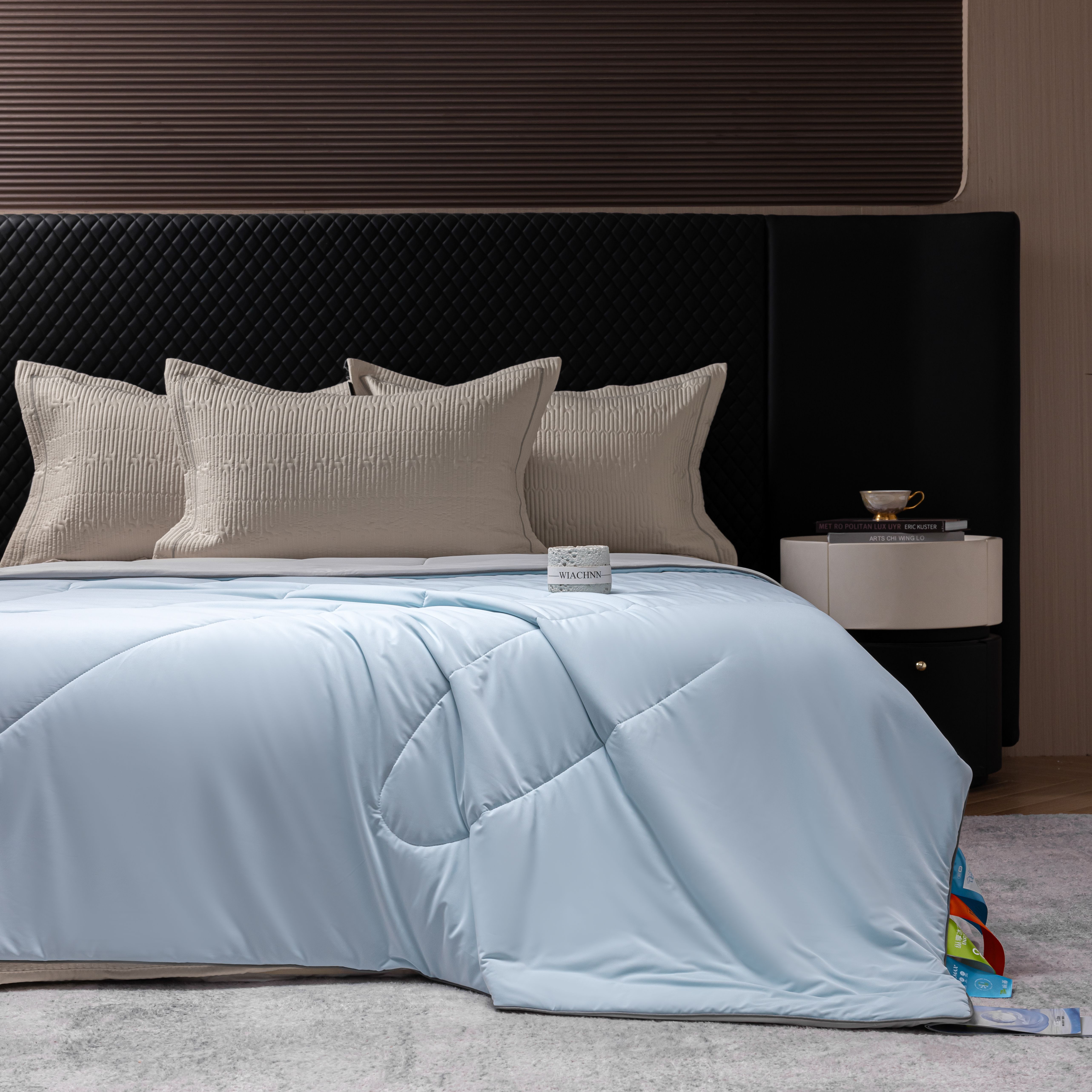 (总)丽卡家纺2026新款冰丽丝锦氨凉感夏被子被芯,淡雅紫+天空蓝,青草绿+浅银灰,珊瑚橘+浅银灰