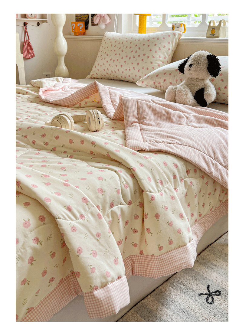 (总)欣宜家纺 2026新款A类水洗棉棉花夏被夏凉被,花田粉,花影绿,铃兰紫,玫瑰灰,蔷薇粉,碎花蓝