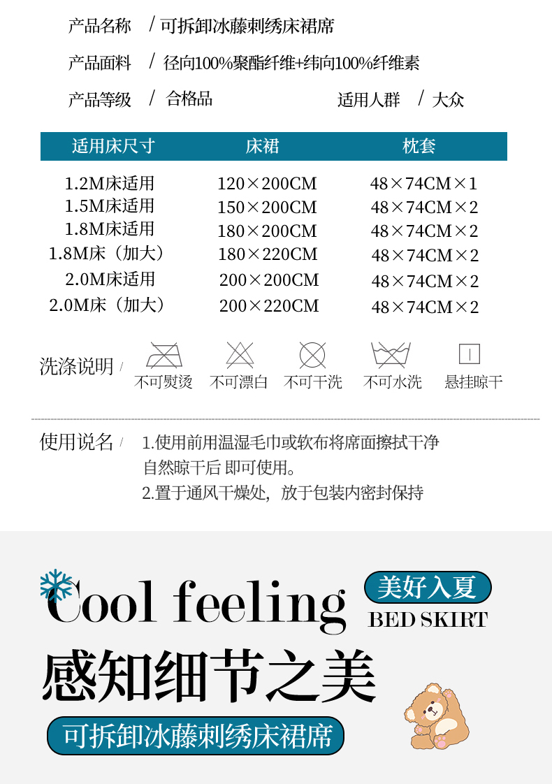 180x200cm床裙+枕套一对