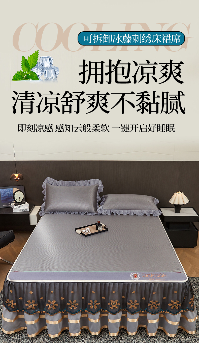 (总)情恒家纺 2026新款冰藤席可拆卸床裙款凉席席子凉席三件套-皇家,皇家-高级灰,皇家-咖啡棕,皇家-香槟金