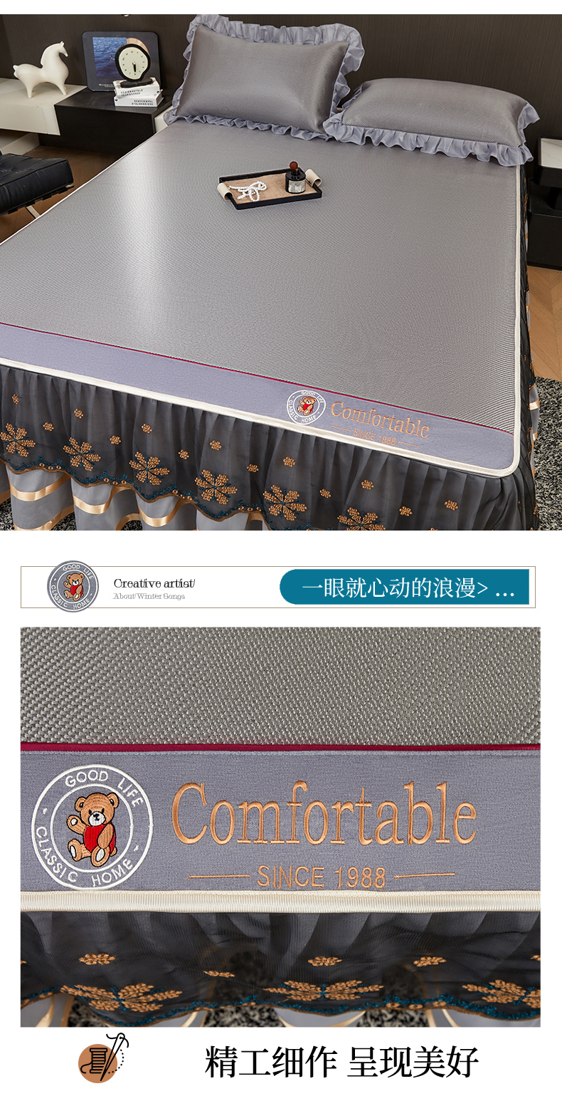 情恒家纺 2026新款冰藤席可拆卸床裙款凉席席子凉席三件套-皇家 皇家-高级灰