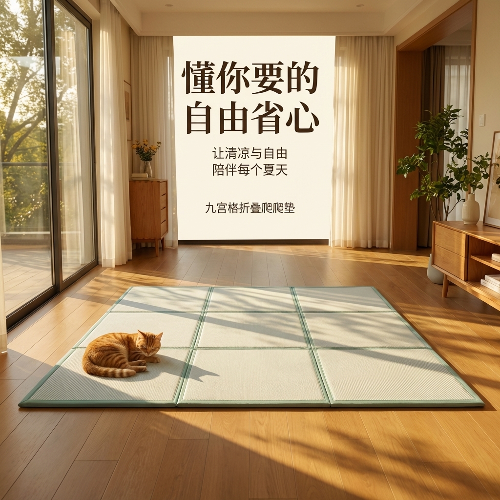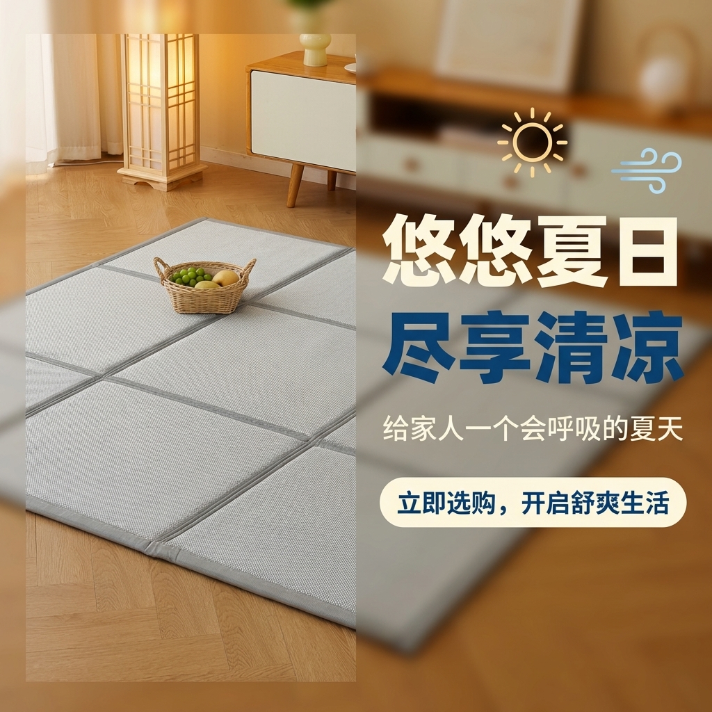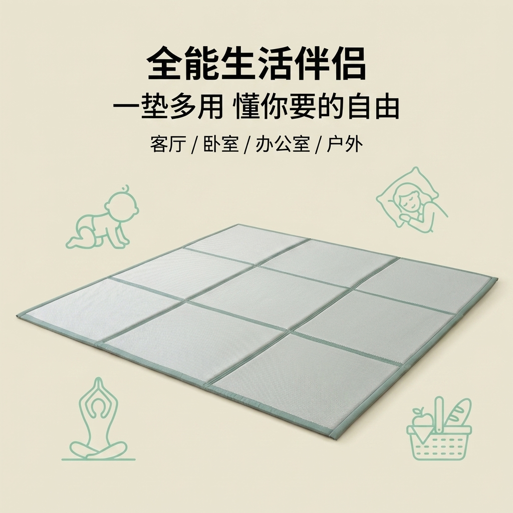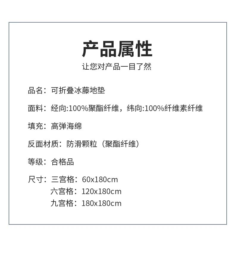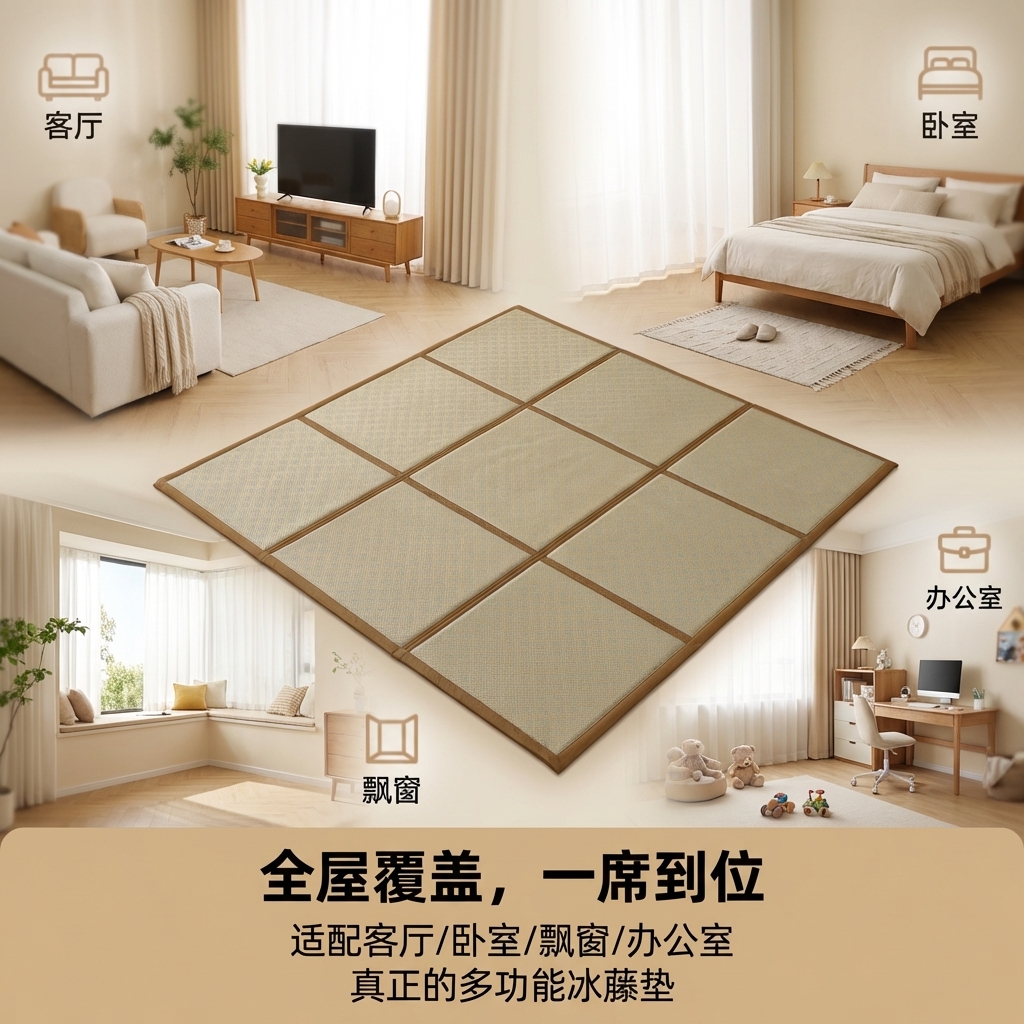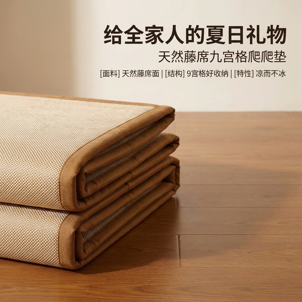 商品名称:(总)席世家 2026新款折叠冰藤九宫格地垫