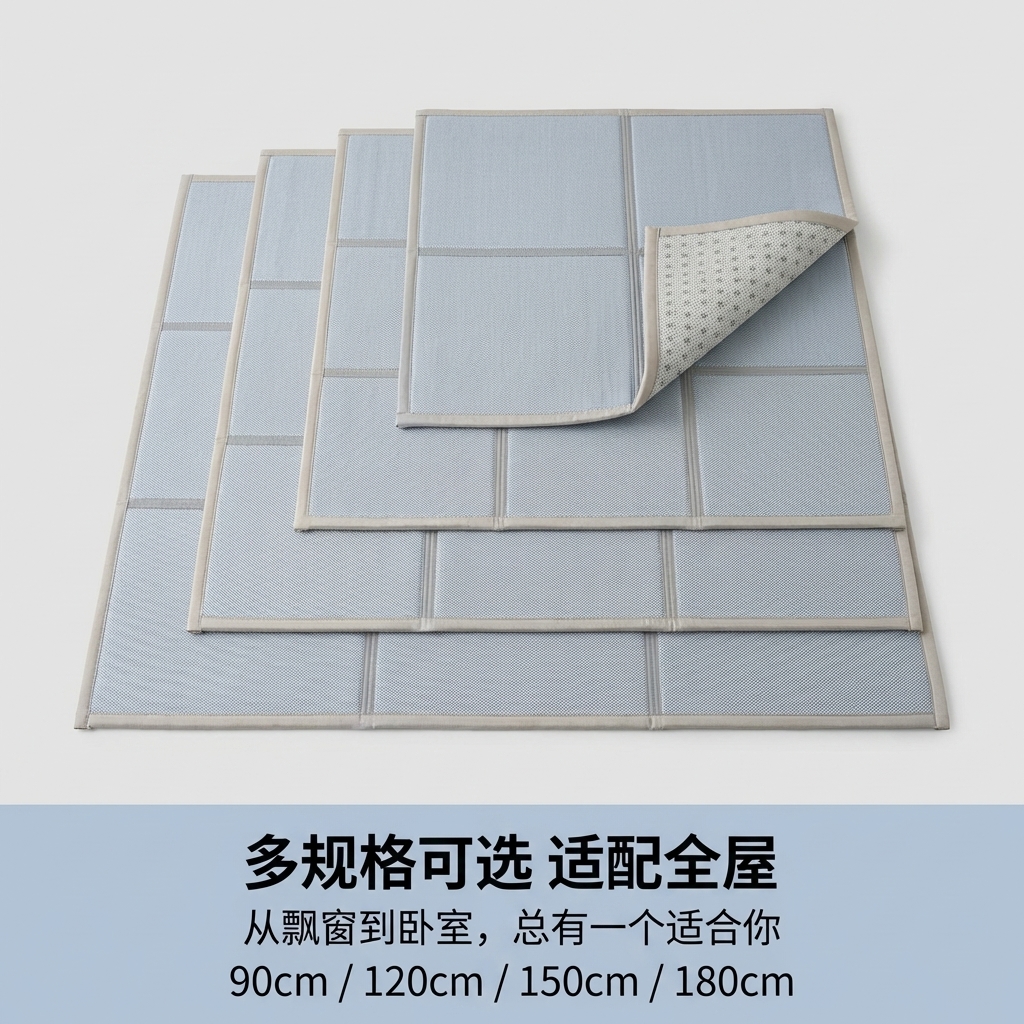 (总)席世家 2025新款凉感肌理多功能地垫凉席垫,肌理-灰,肌理-蓝,肌理-绿