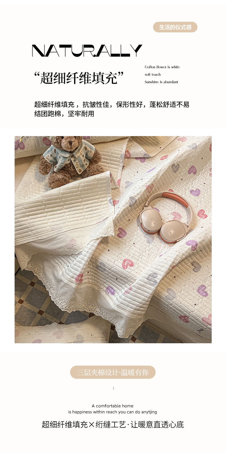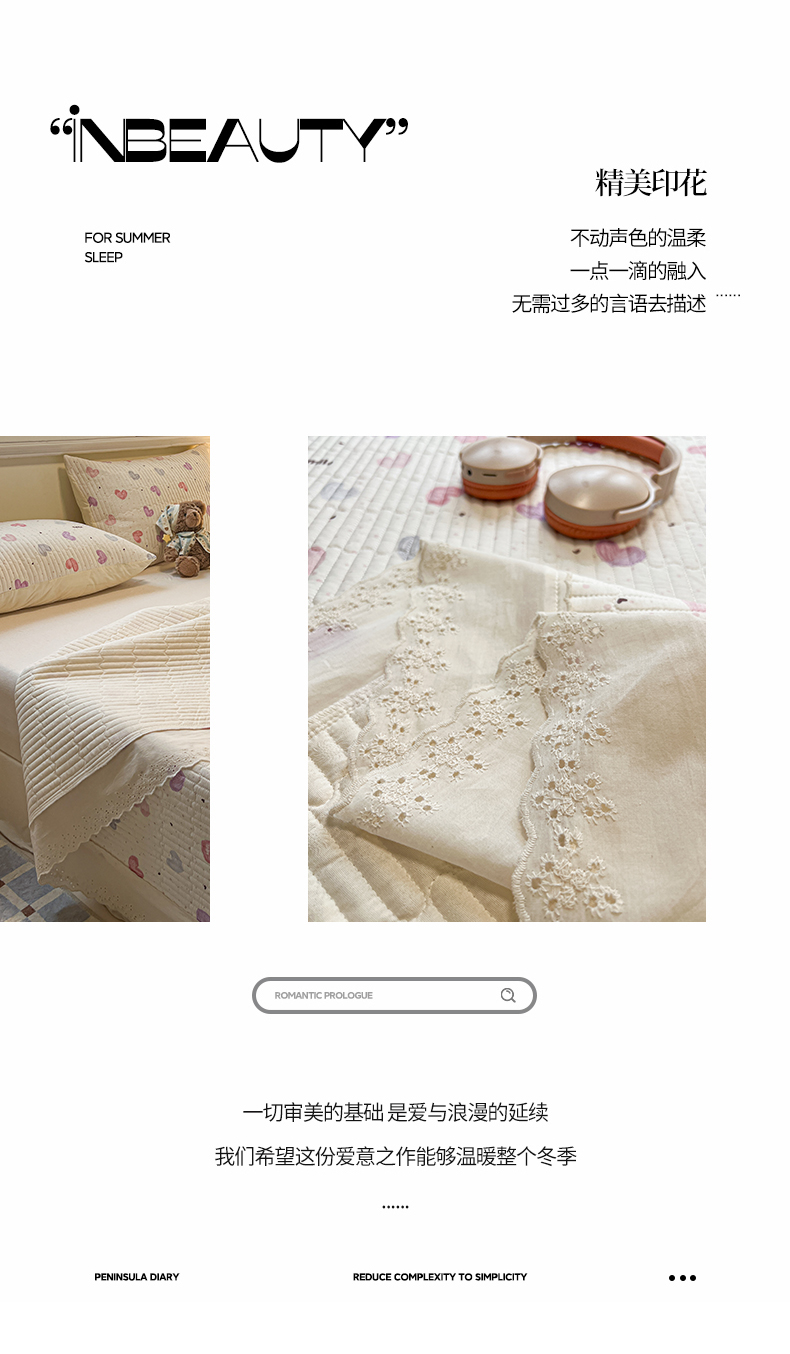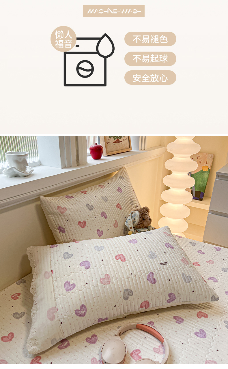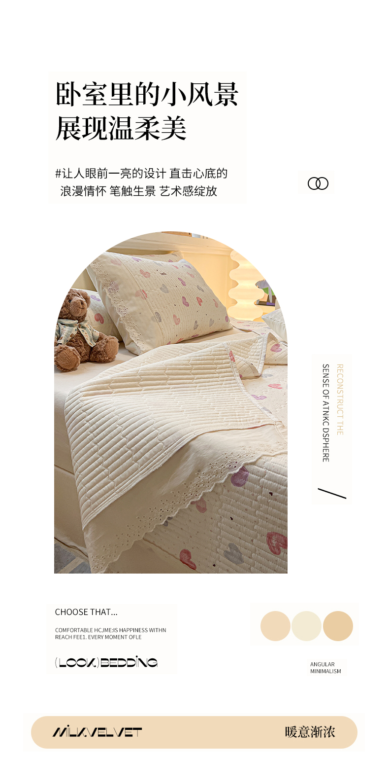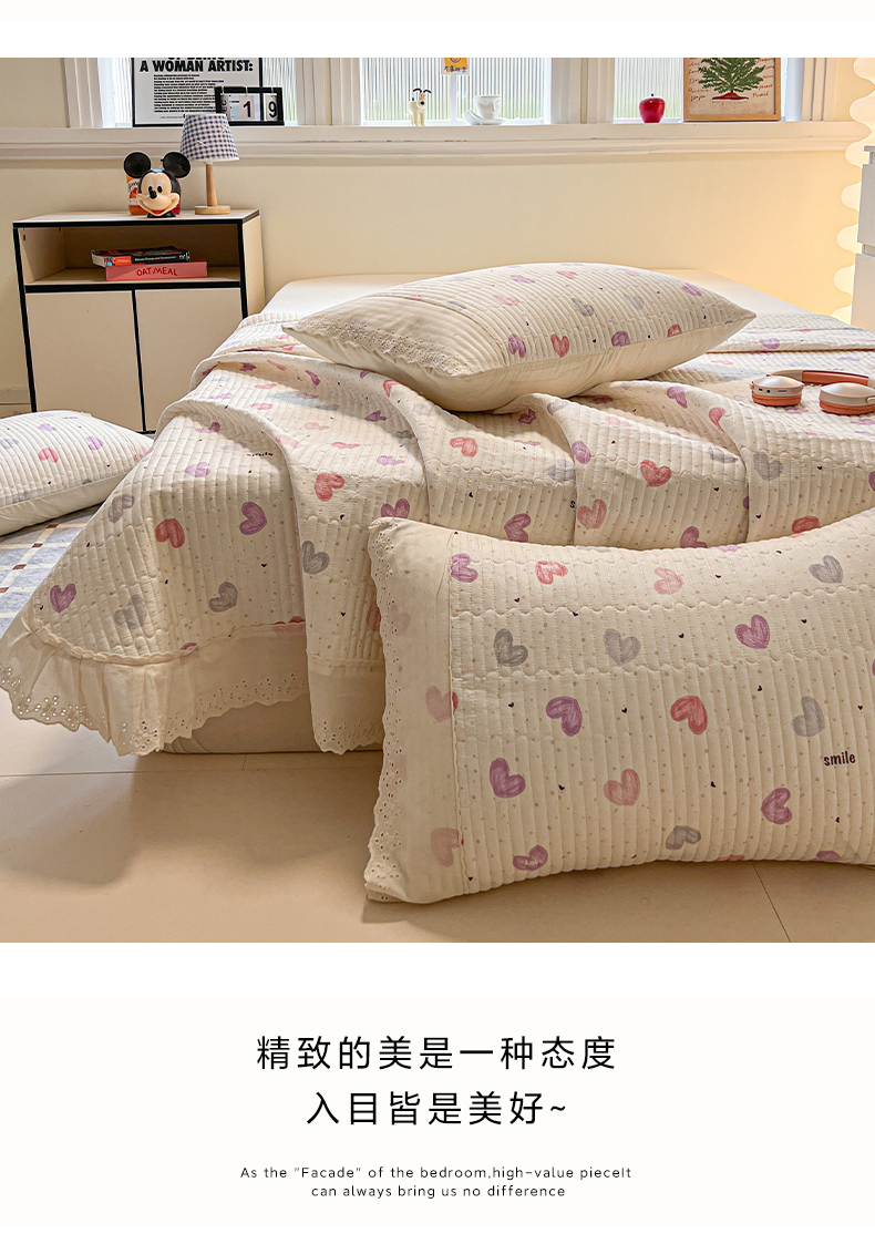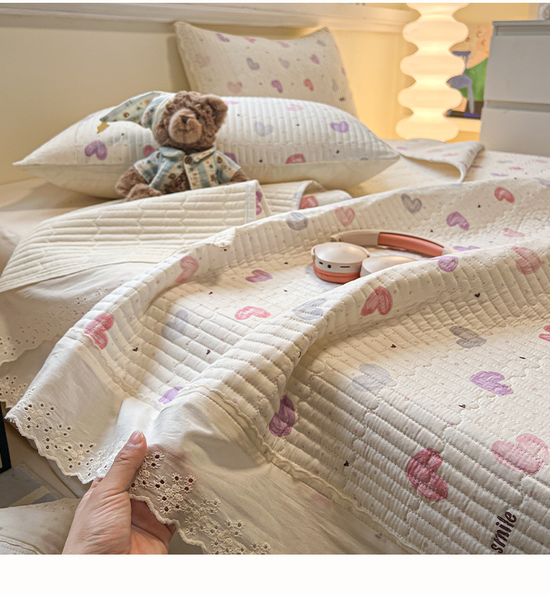 商品名称:舒居家纺 2026春夏新款花边款全棉印花单床盖 床盖单件(第一批) 彩色爱心