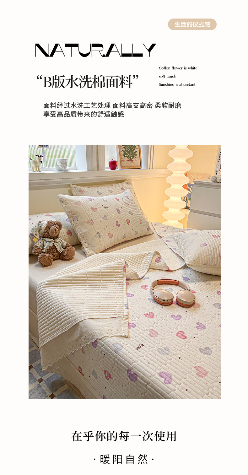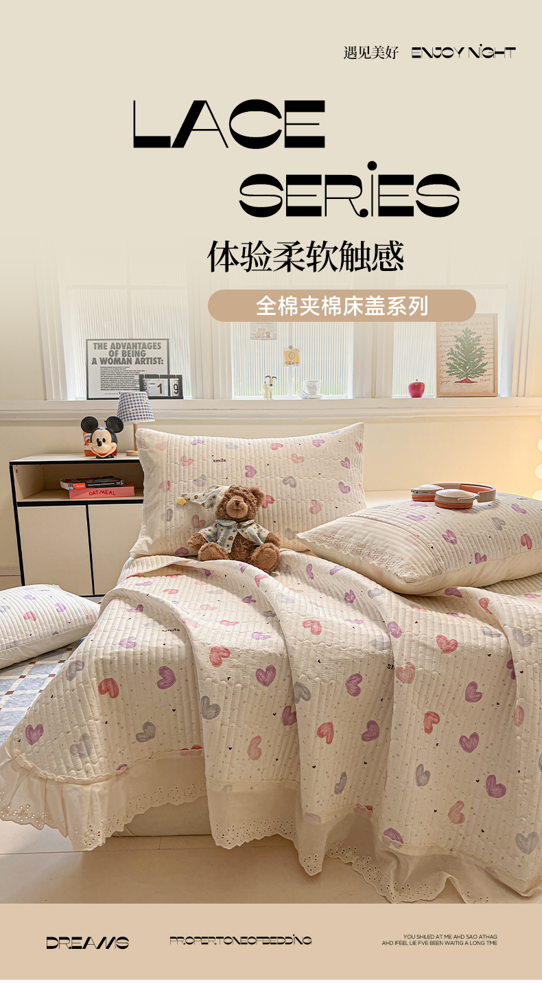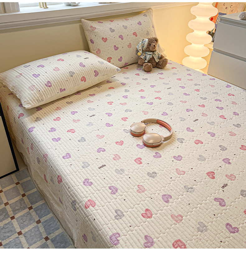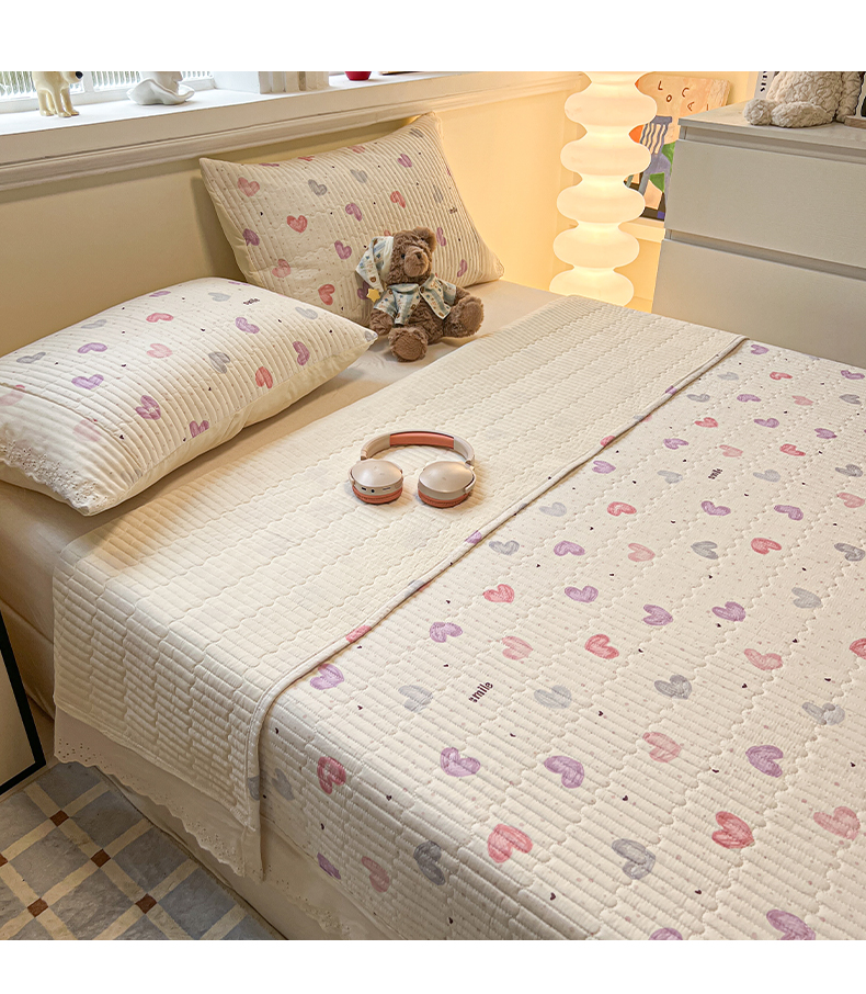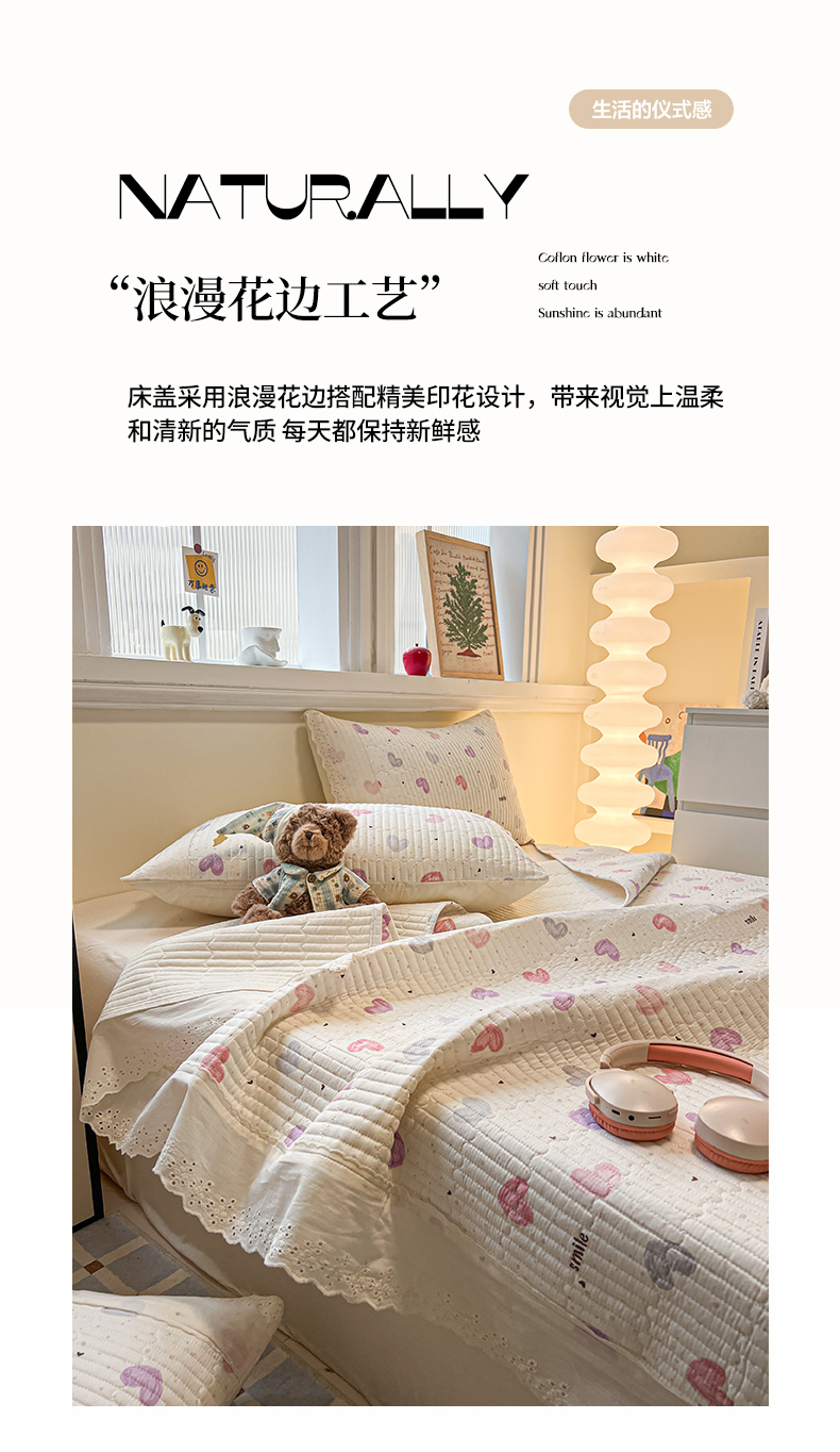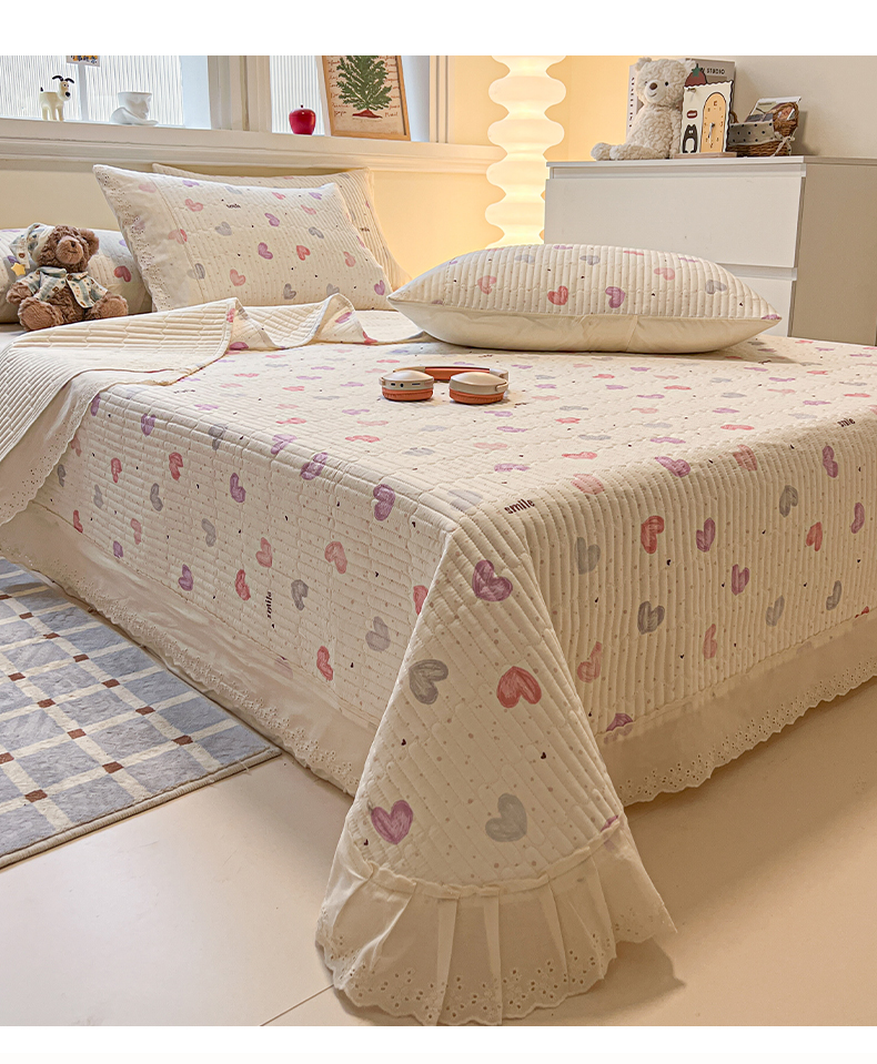 舒居家纺 2026春夏新款花边款全棉印花单床盖 床盖单件(第一批) 彩色爱心