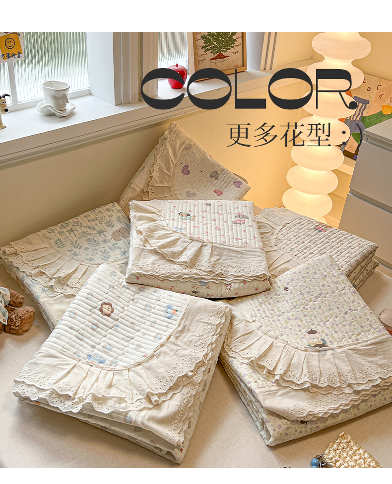 (总)舒居家纺 2026春夏新款花边款全棉印花单床盖 床盖单件(第一批),组合图仅供展示不可下单,萌系乐园,森林小镇,宠物家族,彩色爱心,缤纷乐园,碎花学院