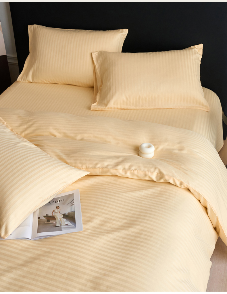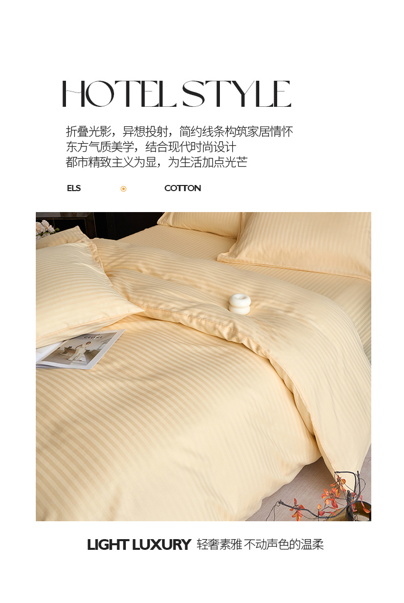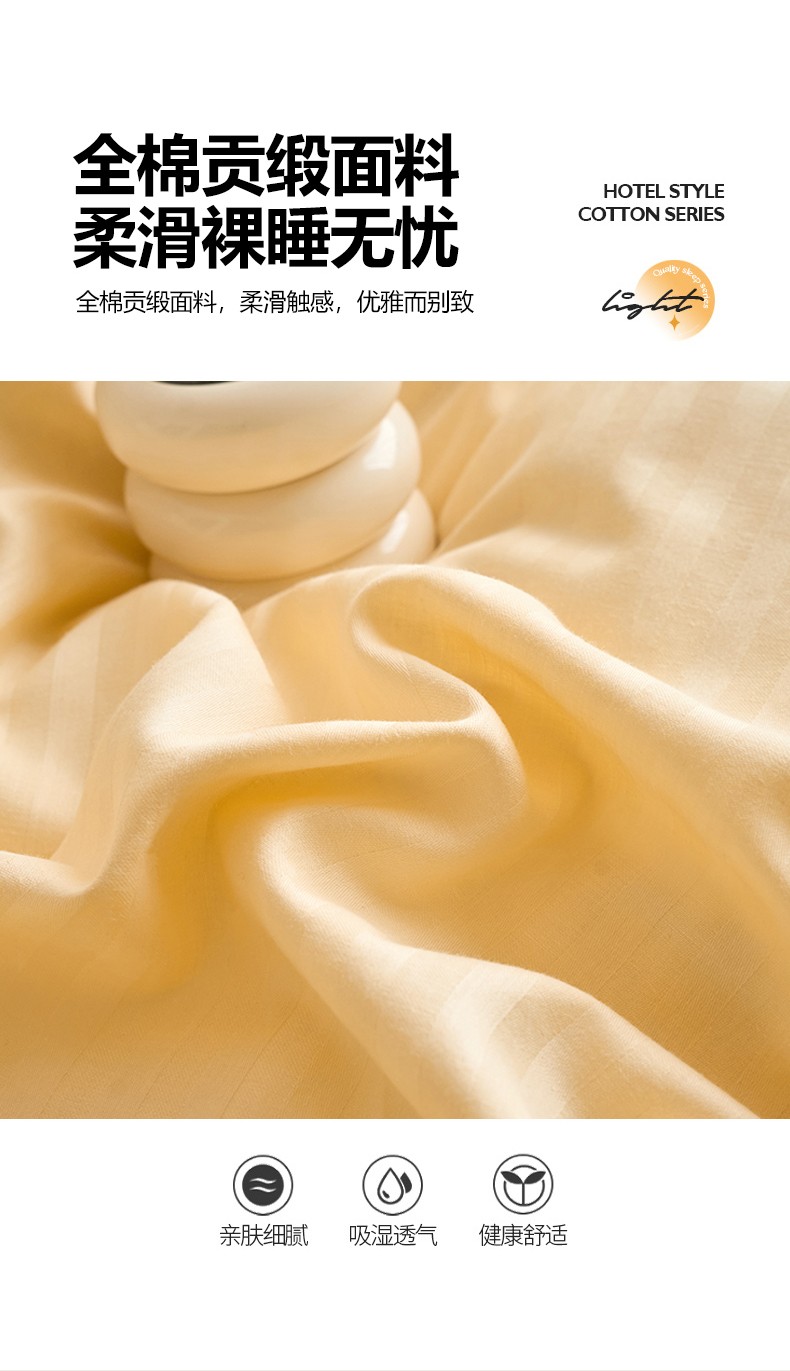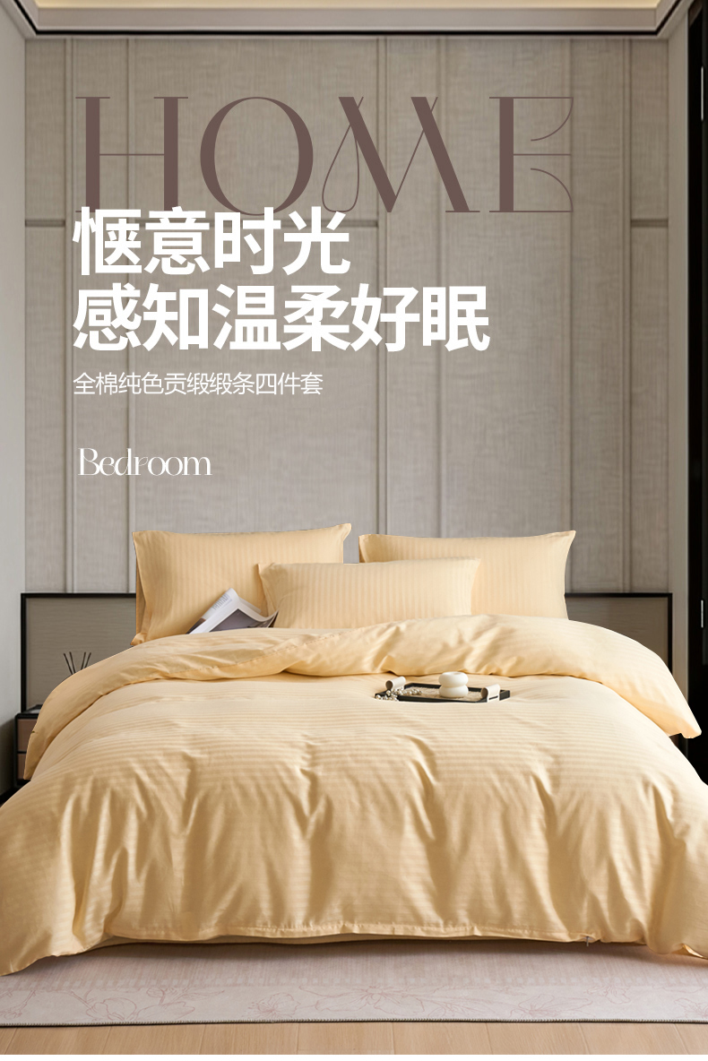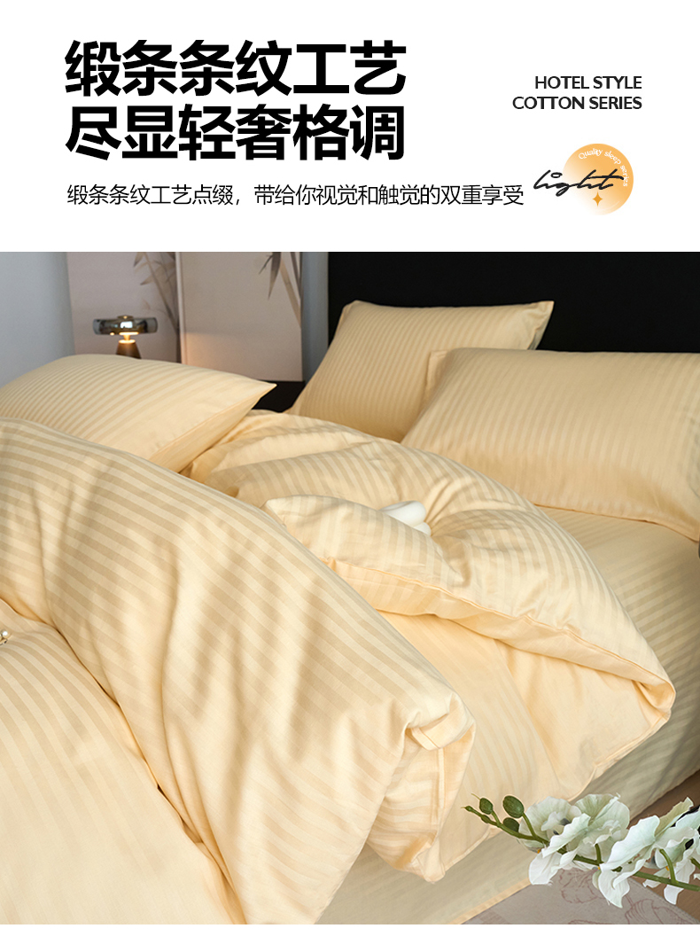 当前位置: 91家纺网 > 商品网购 > 床品套件 > 四件套 > 全棉普通四件套 > 兰紫橙家纺 2026新款全棉纯棉纯色贡缎缎条四件套 缎条-米黄