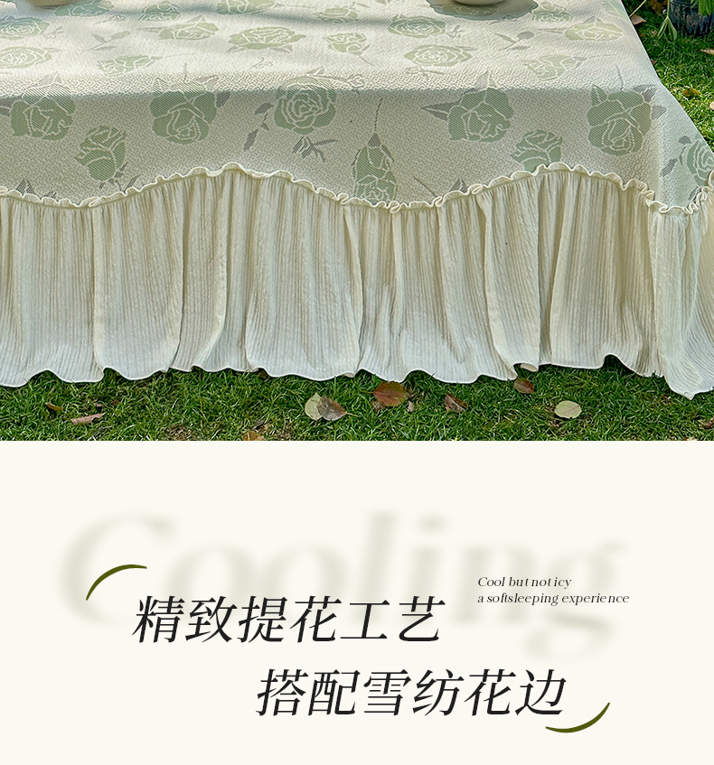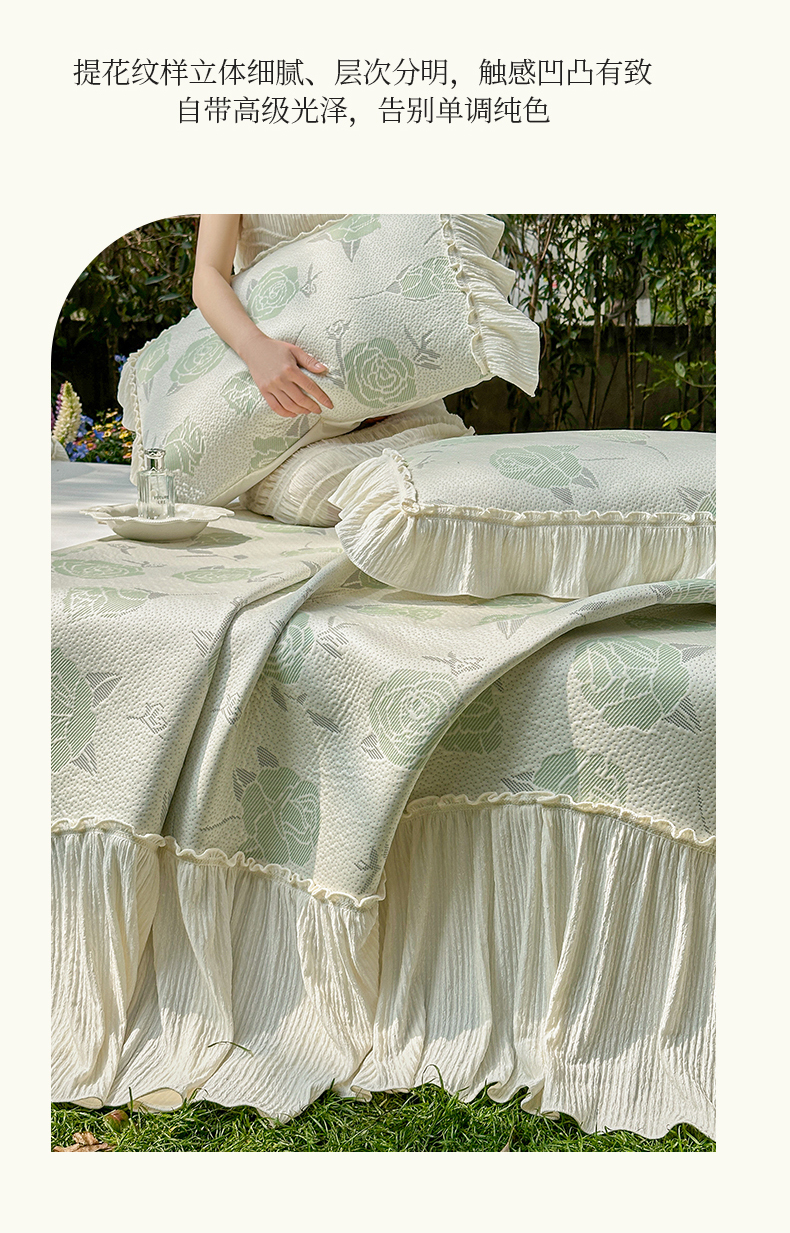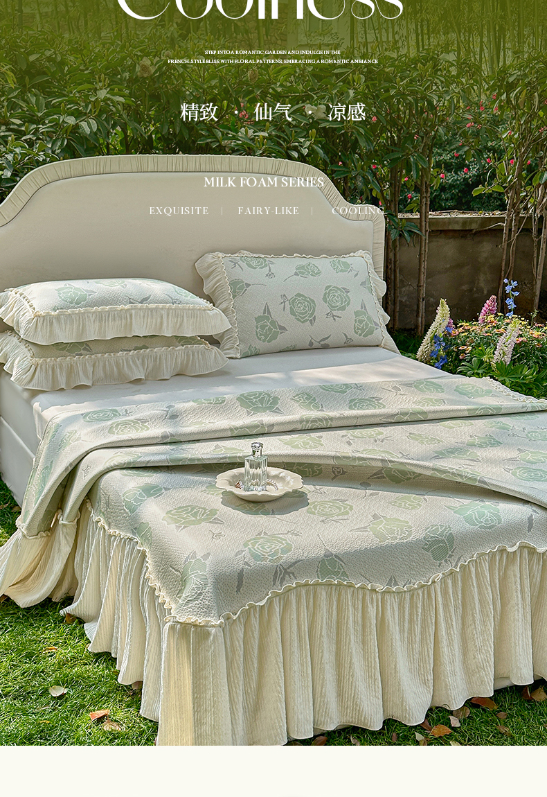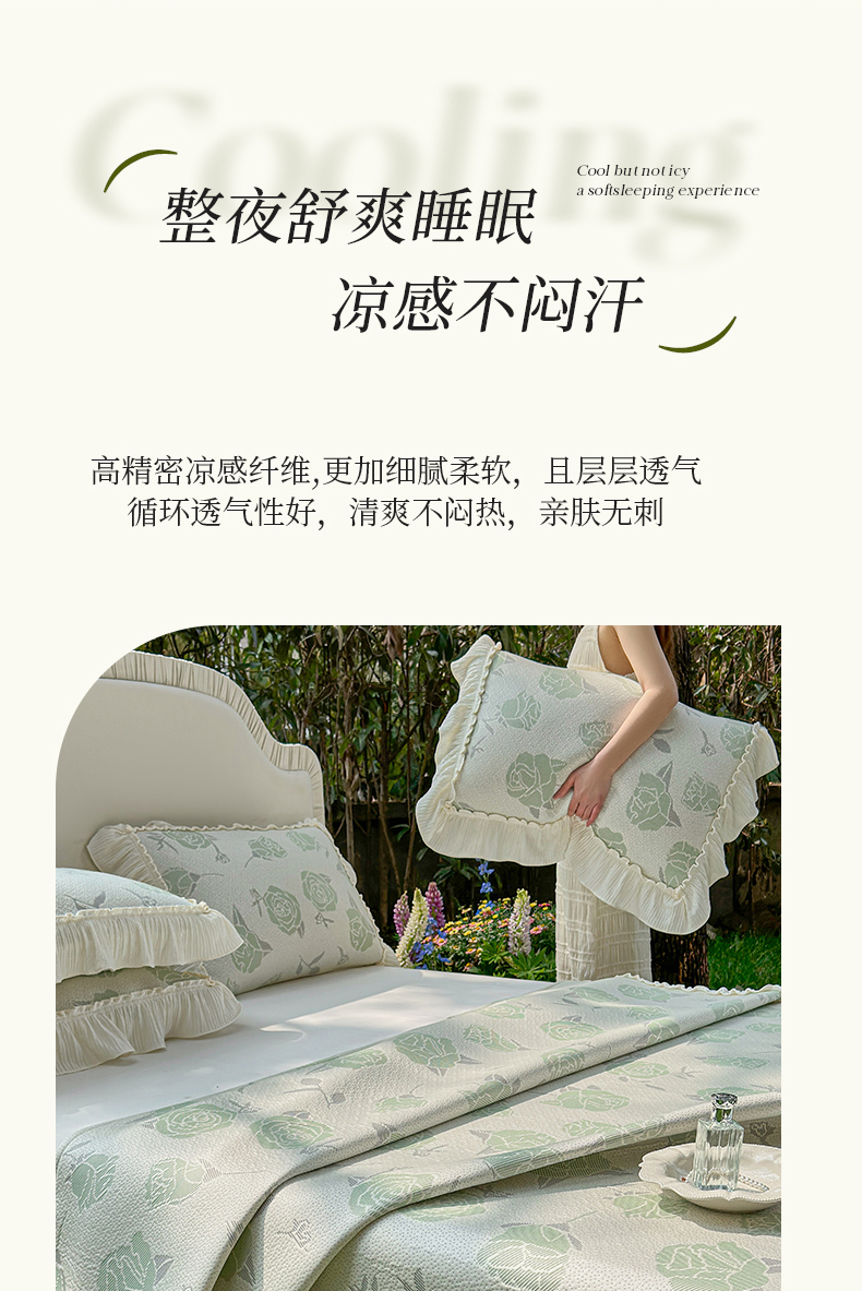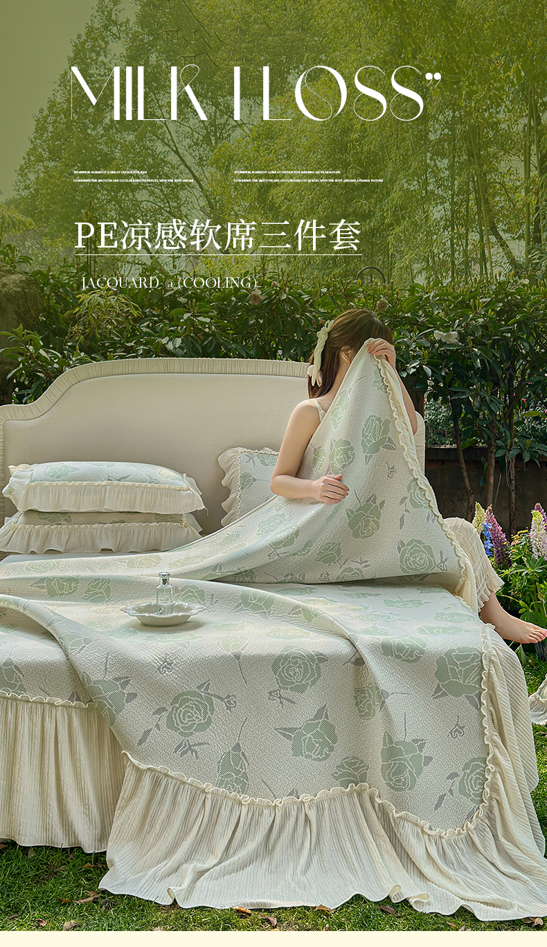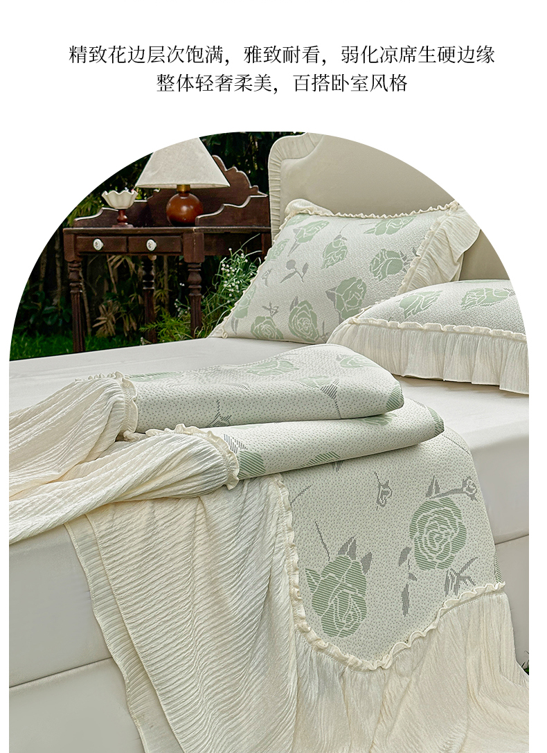 乐朵家居 2026新款 奶芙 玫瑰 弧度款 凉豆豆 凉席三件套 绿