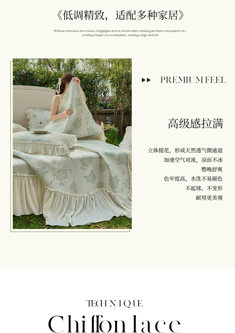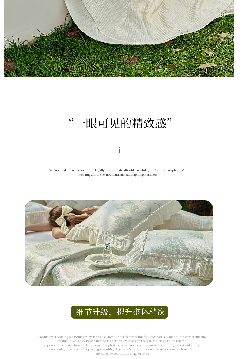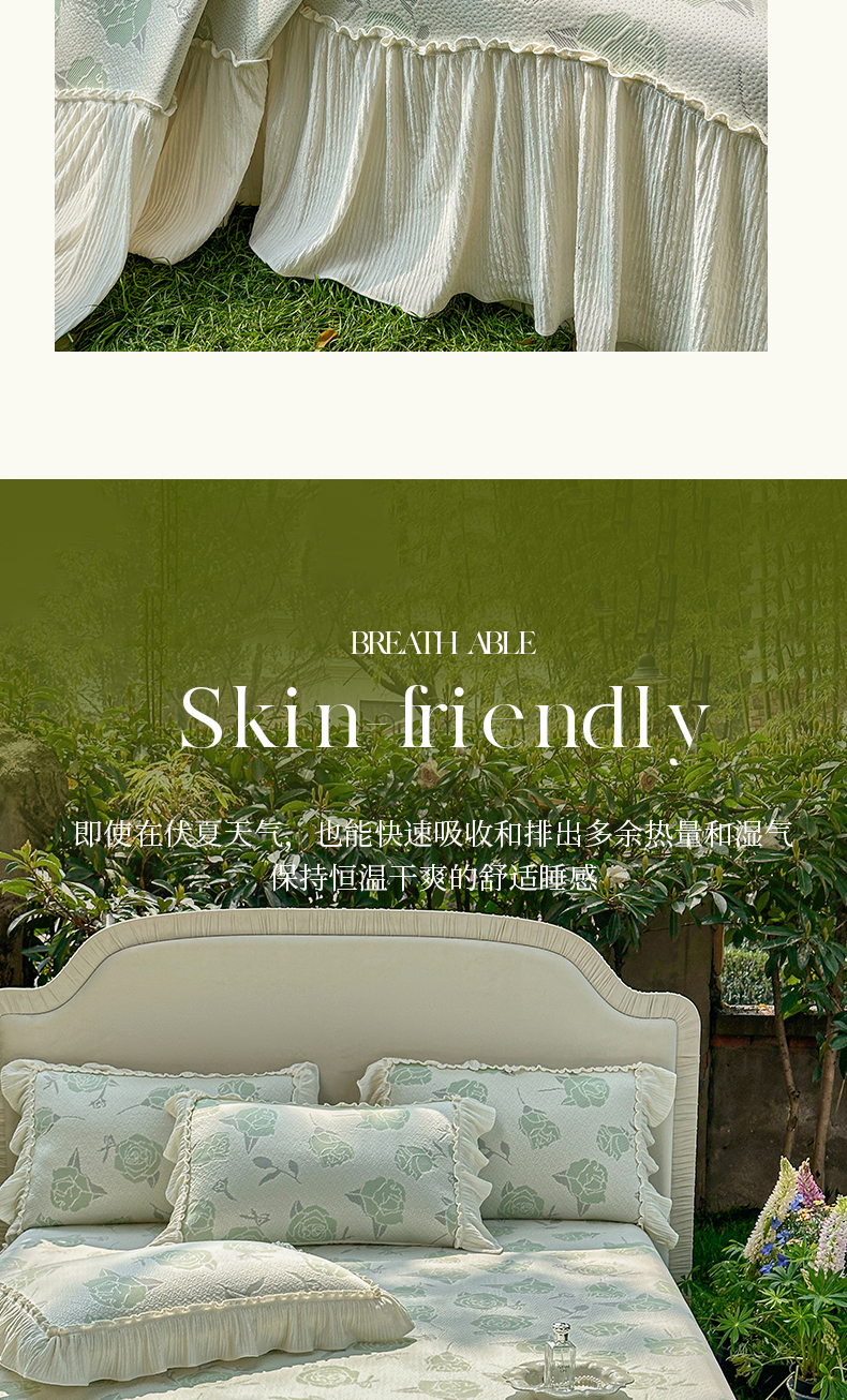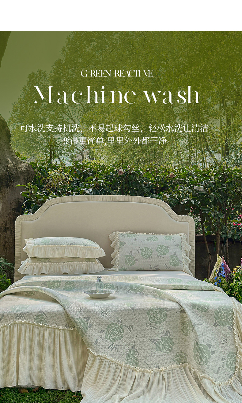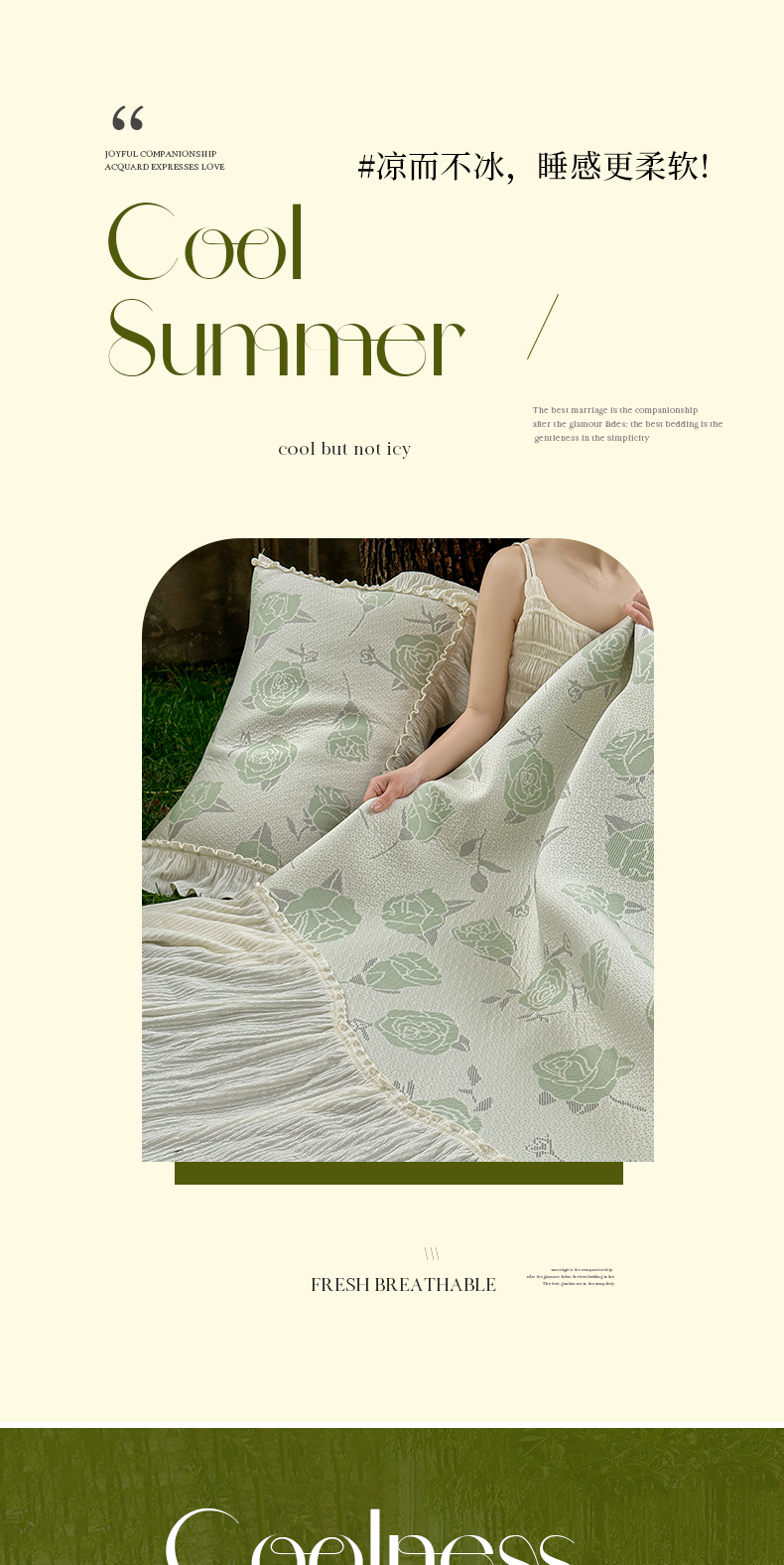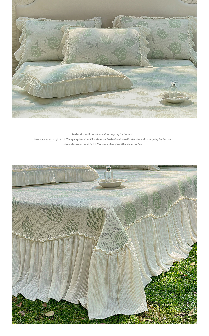 乐朵家居 2026新款 奶芙 玫瑰 弧度款 凉豆豆 凉席三件套 绿