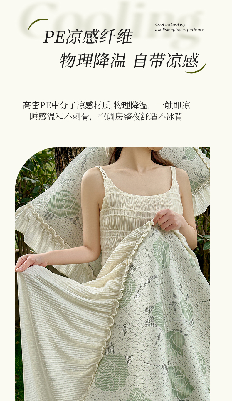 商品名称:乐朵家居 2026新款 奶芙 玫瑰 弧度款 凉豆豆 凉席三件套 绿