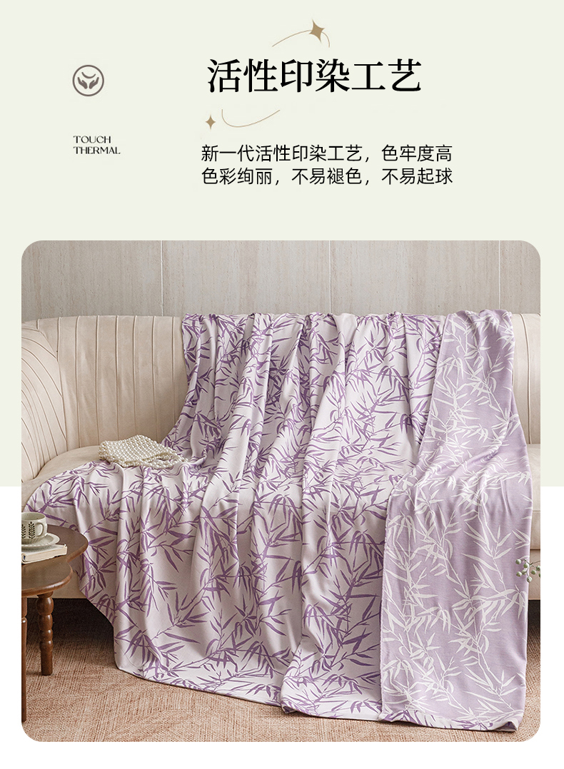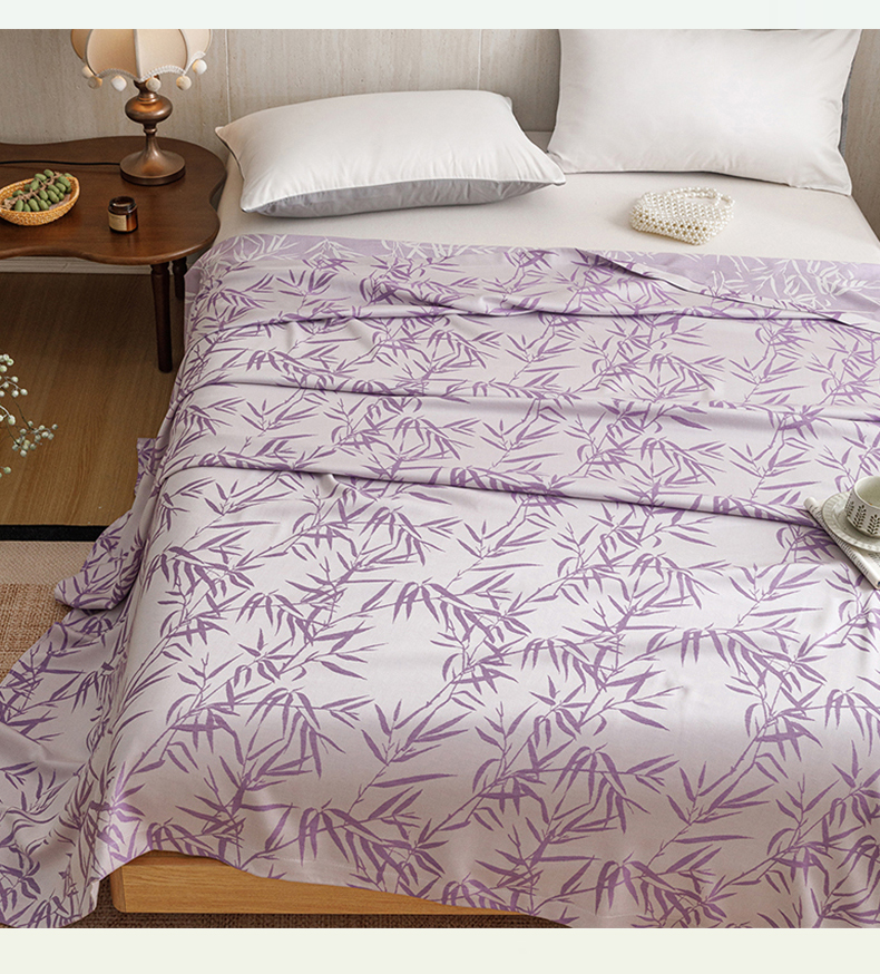 商品名称:悦然毛巾被 2026新款竹纤维冷感毯盖毯再生素纤维休闲夏被毛巾被夏凉被空调被 竹语织锦紫